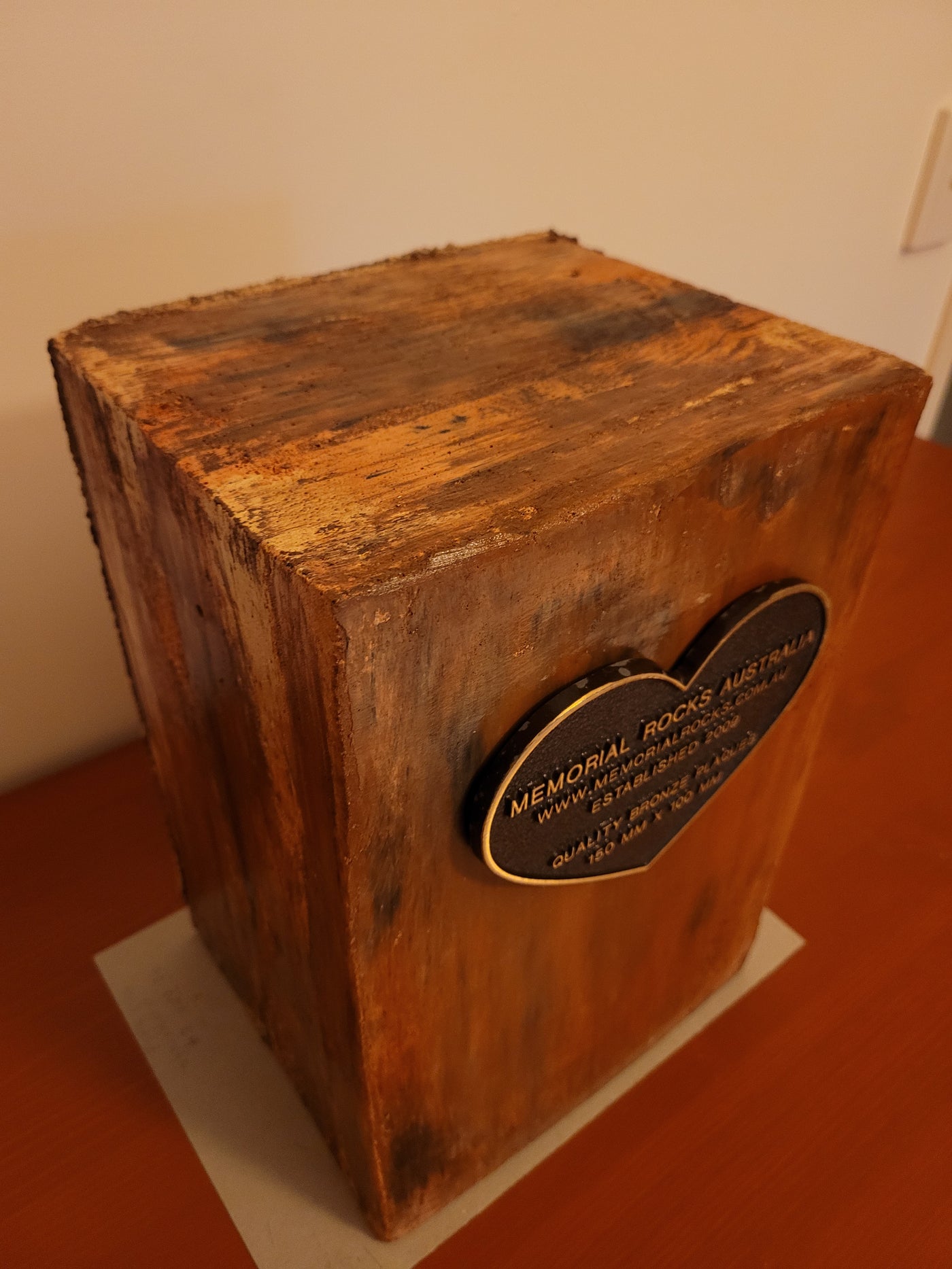 {"id":7798908551357,"title":"Indoor \/ Outdoor Memorial Urn for ashes no. 1758","handle":"indoor-outdoor-memorial-urn-for-ashes-template","description":"\u003cp\u003eGFRC ( Glass Fibre Reinforced Concrete) ( silica free) Indoor\/Outdoor Memorial Urns are a loving practical alternative for the safe keeping of a loved one's ashes.\u003c\/p\u003e\n\u003cp\u003eThe individually unique colouring is not painted on but rather is impregnated as a part of the concrete. A high strength Outdoor quality sealant is then applied. \u003c\/p\u003e\n\u003cp\u003eUnlike the expensive wooden Urns often sold these extremely strong Concrete Urns are very fire resistant.\u003c\/p\u003e\n\u003cp\u003eMultiple Indoor\/ Outdoor Urns can also be stacked forming a Family Memorial Wall.\u003c\/p\u003e\n\u003cp\u003eThis Memorial Urn can accommodate a recommended 150mm x 100mm x4.5mm industry standard bronze plaque. Rectangular or Heart Shaped. \u003c\/p\u003e\n\u003cp\u003ePLAQUE SOLD SEPARATELY \u003c\/p\u003e\n\u003cp\u003eProudly an Australian made, original product. Operating since 2009.\u003c\/p\u003e\n\u003cp\u003eRegular size.\u003c\/p\u003e\n\u003cp\u003eLightweight (approx. 15 kg) Memorial indoor\/outdoor Urn with a sealable internal cavity for the safe-keeping of a loved one's ashes. Holds one standard Australian sized ash container. (250mm x 150mm x 120mm)\u003c\/p\u003e\n\u003cp\u003eA concrete backing plate and adhesive are supplied.\u003c\/p\u003e\n\u003cp\u003eSize External : 320mm x 220mm x 180mm. Internal : 270mm x 160mm x 140mm \u003c\/p\u003e\n\u003cp\u003eA high quality bronze plaque of your choice can also be purchased and can affixed prior to shipping if you wish. A 150mm x 100mm x 4.5 mm Plaque Rectangular or Heart Shaped) is the correct size plaque for the regular sized Indoor \/ Outdoor Memorial Urn.\u003c\/p\u003e\n\u003cp\u003e GST and Free Australia wide delivery is included .\u003c\/p\u003e\n\u003cp\u003e\u003cspan\u003eThe blue plastic cremation urn is photographed for display purposes and to reassure customers that the standard sized Australian cremation urn will fit comfortably.\u003c\/span\u003e\u003c\/p\u003e\n\u003cp\u003ePlease call 0413770272 to arrange to visit our Gold Coast display if you wish to view our full range personally.\u003c\/p\u003e\n\u003cp\u003eIf you have difficulties with local transport, a sample display may be able to come to you.\u003c\/p\u003e\n\u003cp\u003eWe are also able to receive and inter a loved one's ashes if you wish. \u003c\/p\u003e\n\u003cp\u003ePlease contact us any time if You have any questions. \u003c\/p\u003e\n\u003cp\u003eCovit 19 protocols are in place.\u003c\/p\u003e\n\u003cp\u003eWe hope our Indoor \/ Outdoor Memorial Urn will bring some comfort.\u003c\/p\u003e\n\u003cp\u003eAll the Best, Bud and Shinta Manthey. MRA \u003c\/p\u003e\n\u003cp\u003eNOTE: Payment of order can be made easily and securely with a Credit Card or Paypal. You do not need to join Paypal. For an alternative payment arrangement, please call us.\u003c\/p\u003e\n\u003cp\u003eTo buy, simply click \"Add to Cart\".\u003c\/p\u003e\n\u003cp\u003eTo see order, click \"View Cart\", then to pay click \"Check out\".\u003c\/p\u003e\n\u003cp\u003ePayment can be made in 4 installments by using the \" Afterpay \" facility. \u003c\/p\u003e\n\u003cp\u003eFor assistance please call Bud on 0413 770 272.\u003c\/p\u003e\n\u003cdiv\u003e\u003c\/div\u003e","published_at":"2024-06-07T16:37:10+10:00","created_at":"2024-06-07T15:33:32+10:00","vendor":"MRA","type":"Memorial Rock","tags":["ash interment","box urn","casket","concrete box urn","concrete capsule","concrete cremation urn","concrete urn","concrete vault","cremation urn for buffet","cremation urn for home","cremation urn for home furnishing","cremation urn for interior design","Garden Urn Urn of remembrance","home decor","indoor unrs","Indoor Urn for ashes","indoor urns","keepsake","memorial rock","memorial stone","Memorial Stone for Garden","Memorial Stone Plaque","Memorial Stones For Gardens","Memorial Urn","personalised gift for loved ones","Pet Memorial Rock","Remembrance","small memorial rock urn","Stone of Remembrace","Urn","urn for ashes","Urns","urns for buffet","vault","Vaults"],"price":50000,"price_min":50000,"price_max":50000,"available":true,"price_varies":false,"compare_at_price":62500,"compare_at_price_min":62500,"compare_at_price_max":62500,"compare_at_price_varies":false,"variants":[{"id":44057066569917,"title":"Default Title","option1":"Default Title","option2":null,"option3":null,"sku":"1758","requires_shipping":true,"taxable":true,"featured_image":null,"available":true,"name":"Indoor \/ Outdoor Memorial Urn for ashes no. 1758","public_title":null,"options":["Default Title"],"price":50000,"weight":10000,"compare_at_price":62500,"inventory_quantity":1,"inventory_management":"shopify","inventory_policy":"deny","barcode":"","requires_selling_plan":false,"selling_plan_allocations":[]}],"images":["\/\/memorialrocksaustralia.com.au\/cdn\/shop\/files\/20240607-152558.jpg?v=1717739865","\/\/memorialrocksaustralia.com.au\/cdn\/shop\/files\/20240607-152608.jpg?v=1717739865","\/\/memorialrocksaustralia.com.au\/cdn\/shop\/files\/20240607-152552.jpg?v=1717739865","\/\/memorialrocksaustralia.com.au\/cdn\/shop\/files\/20240607-152535.jpg?v=1717739865","\/\/memorialrocksaustralia.com.au\/cdn\/shop\/files\/20240607-152540.jpg?v=1717739865","\/\/memorialrocksaustralia.com.au\/cdn\/shop\/files\/20240607-152500.jpg?v=1717739865","\/\/memorialrocksaustralia.com.au\/cdn\/shop\/files\/20240607-152233.jpg?v=1717739865","\/\/memorialrocksaustralia.com.au\/cdn\/shop\/files\/20240607-152212.jpg?v=1717739865","\/\/memorialrocksaustralia.com.au\/cdn\/shop\/files\/20240607-152136.jpg?v=1717739865","\/\/memorialrocksaustralia.com.au\/cdn\/shop\/files\/20240607-152117.jpg?v=1717739865","\/\/memorialrocksaustralia.com.au\/cdn\/shop\/files\/20240607-152126.jpg?v=1717739865","\/\/memorialrocksaustralia.com.au\/cdn\/shop\/files\/20240607-151930.jpg?v=1