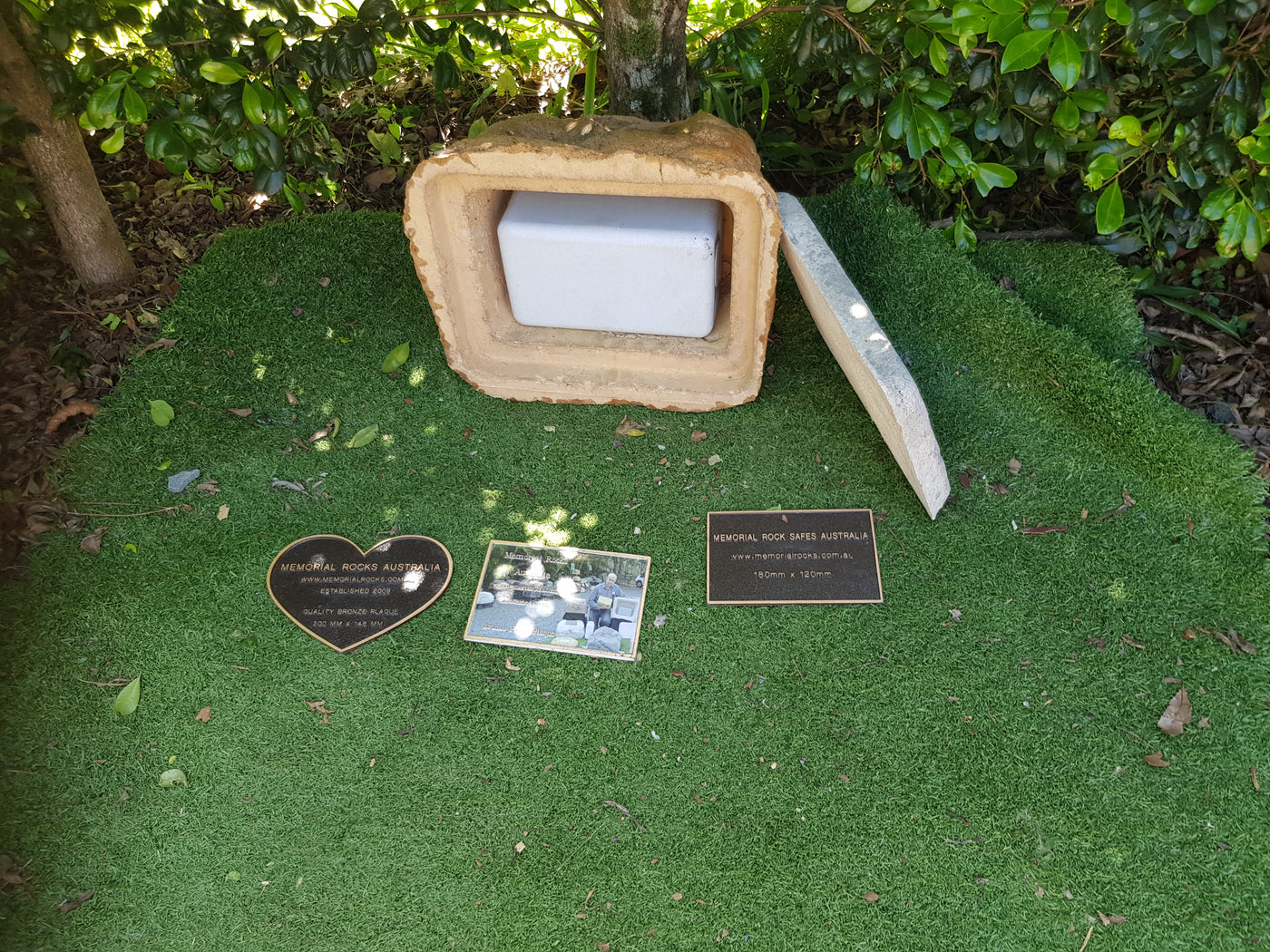 Proudly an original Australian product idea operating since 2009. Large Single Size Approx. 24 kg. Memorial Rock/Stone/Urn with a sealable internal cavity for the safe-keeping of a loved one's ashes. Holds one standard Australian sized ash container, plus memorabilia. Size Approx. 450mm x 390mm x 300mm (external). 270mm x 230mm x 170mm (interna...