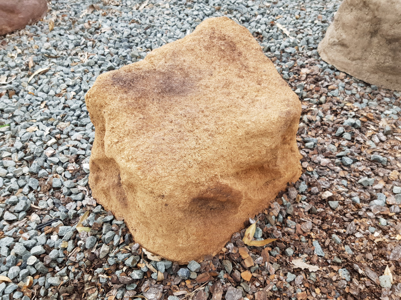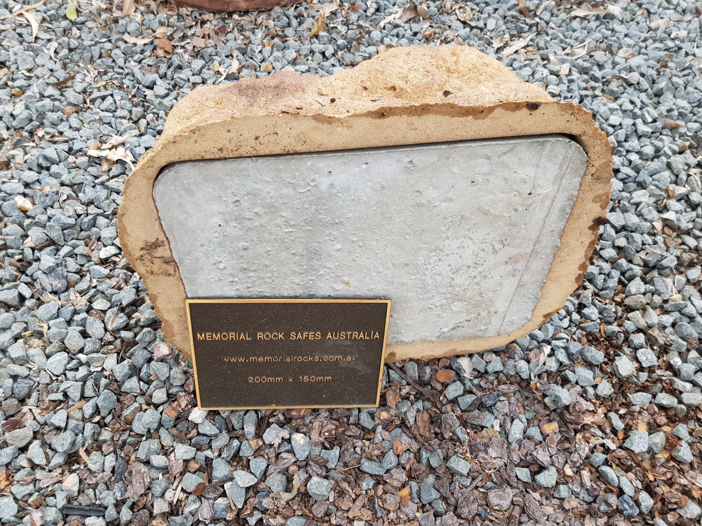 Proudly an original Australian product idea operating since 2009. Large Single Size Approx. 24 kg. Memorial Rock/Stone/Urn with a sealable internal cavity for the safe-keeping of a loved one's ashes. Holds one standard Australian sized ash container, plus memorabilia. Size Approx. 450mm x 390mm x 300mm (external). 270mm x 230mm x 170mm (interna...