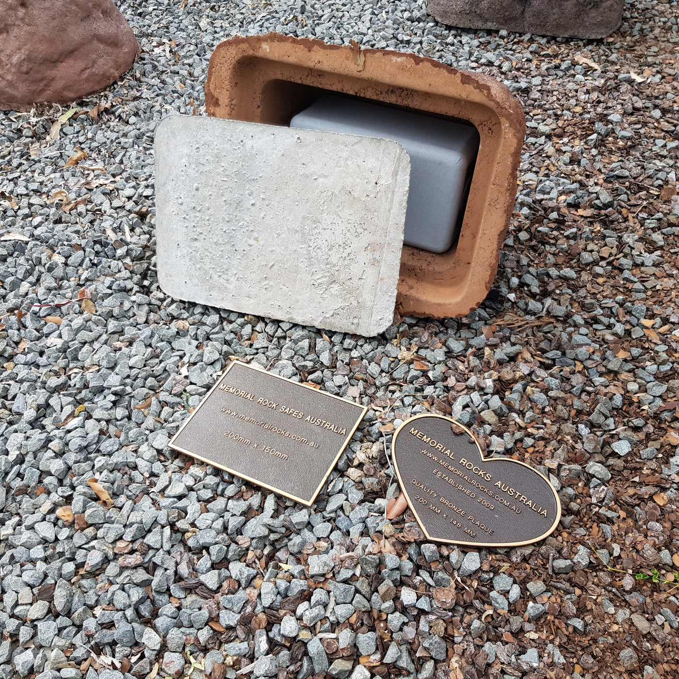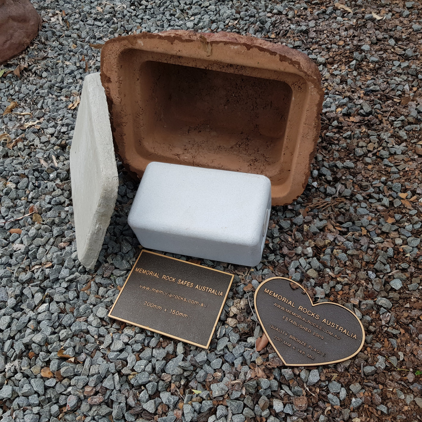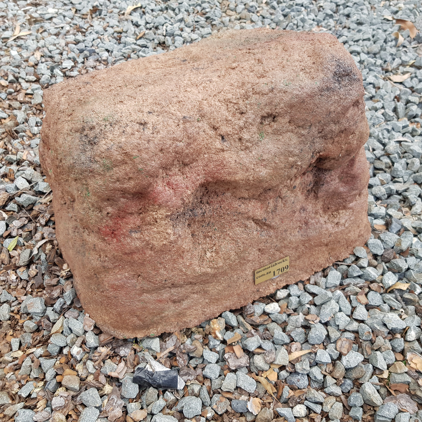 Proudly an original Australian product idea operating since 2009. Large Single Size Approx. 24 kg. Memorial Rock/Stone/Urn with a sealable internal cavity for the safe-keeping of a loved one's ashes. Holds one standard Australian sized ash container, plus memorabilia. Size Approx. 450mm x 390mm x 300mm (external). 270mm x 230mm x 170mm (interna...
