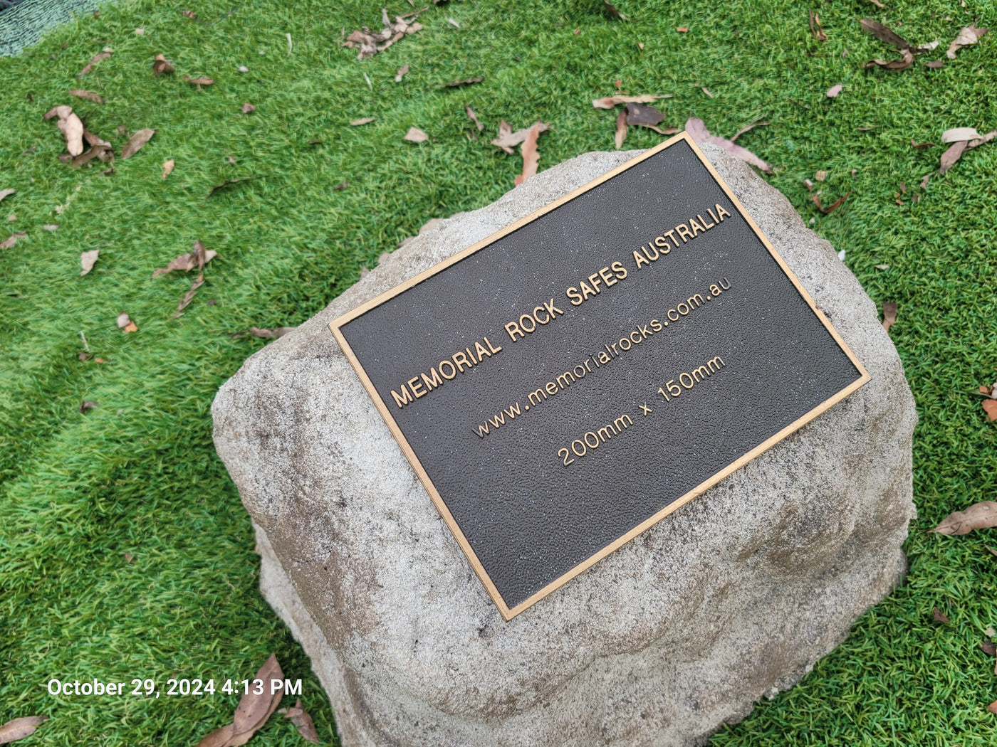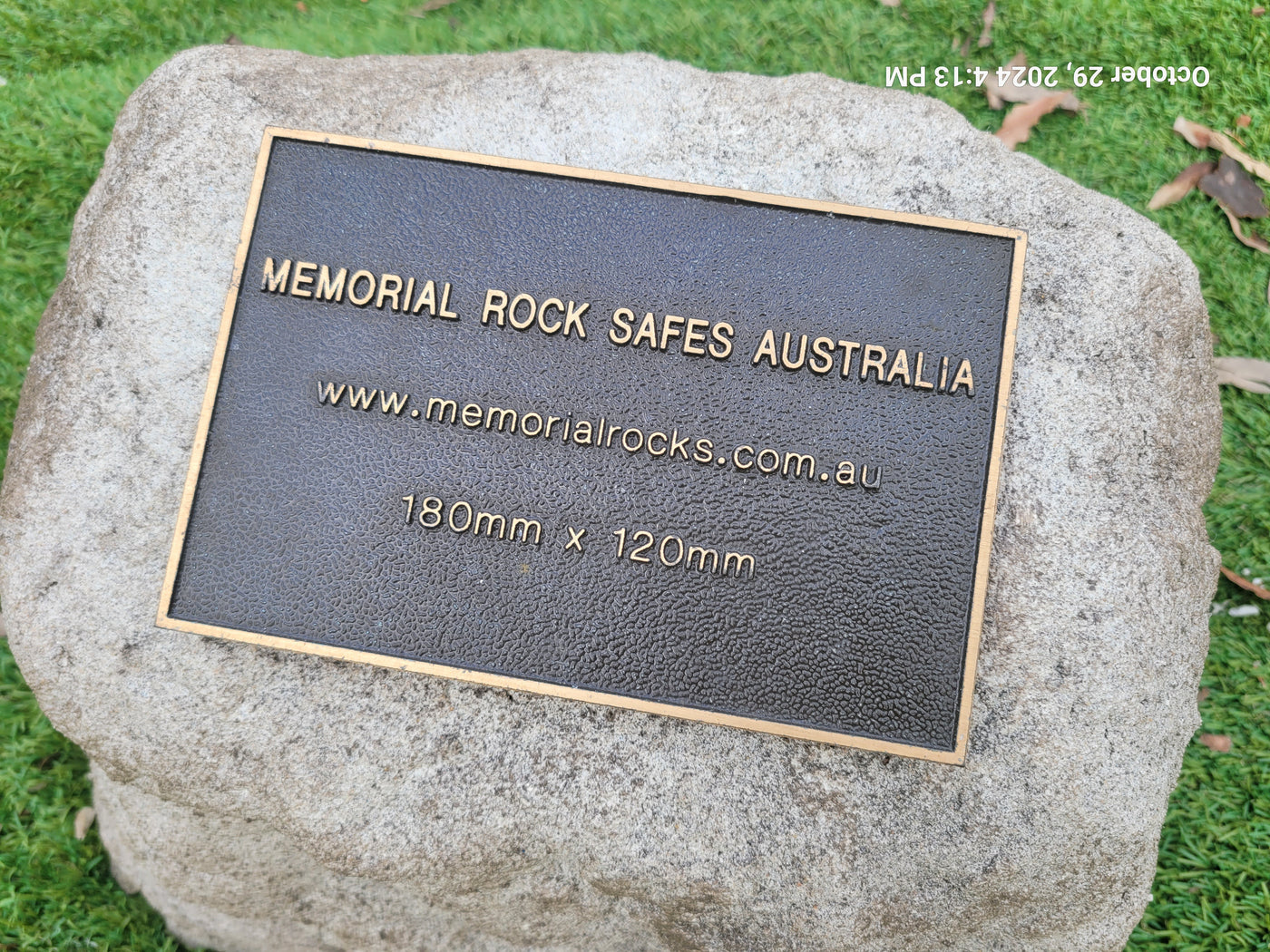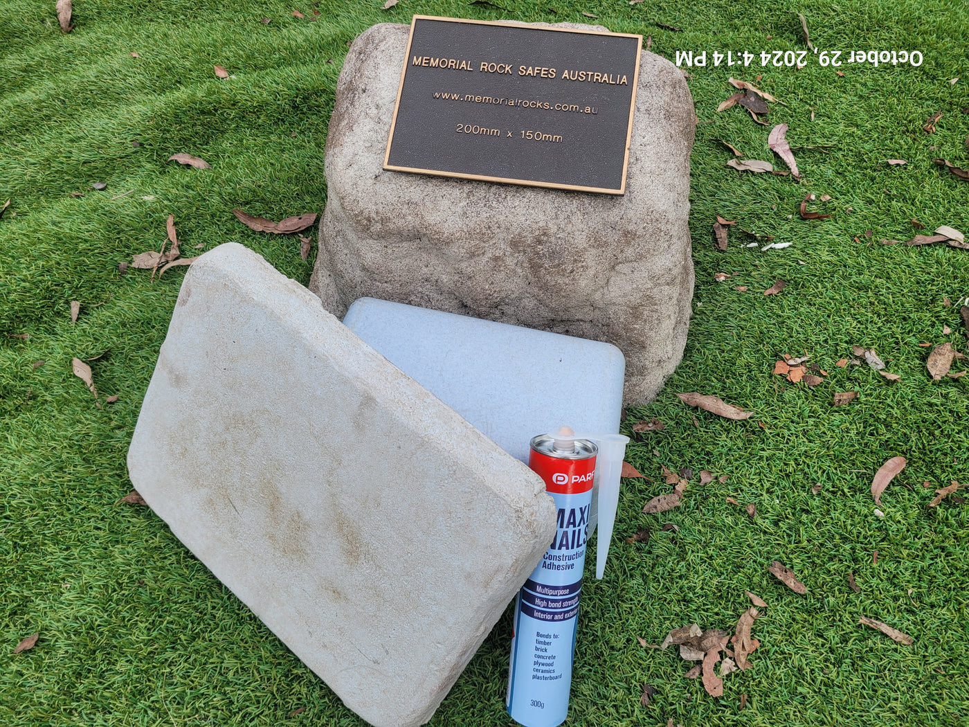 Proudly an original Australian product idea operating since 2009. Large Single Size Approx. 24 kg. Memorial Rock/Stone/Urn with a sealable internal cavity for the safe-keeping of a loved one's ashes. Holds one standard Australian sized ash container, plus memorabilia. Size Approx. 450mm x 390mm x 300mm (external). 270mm x 230mm x 170mm (interna...