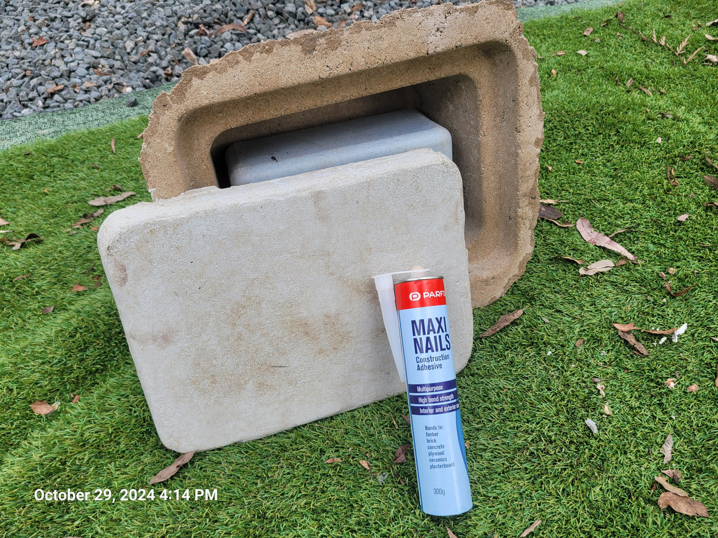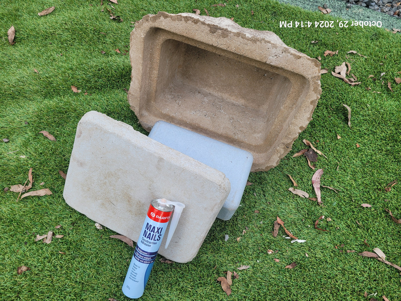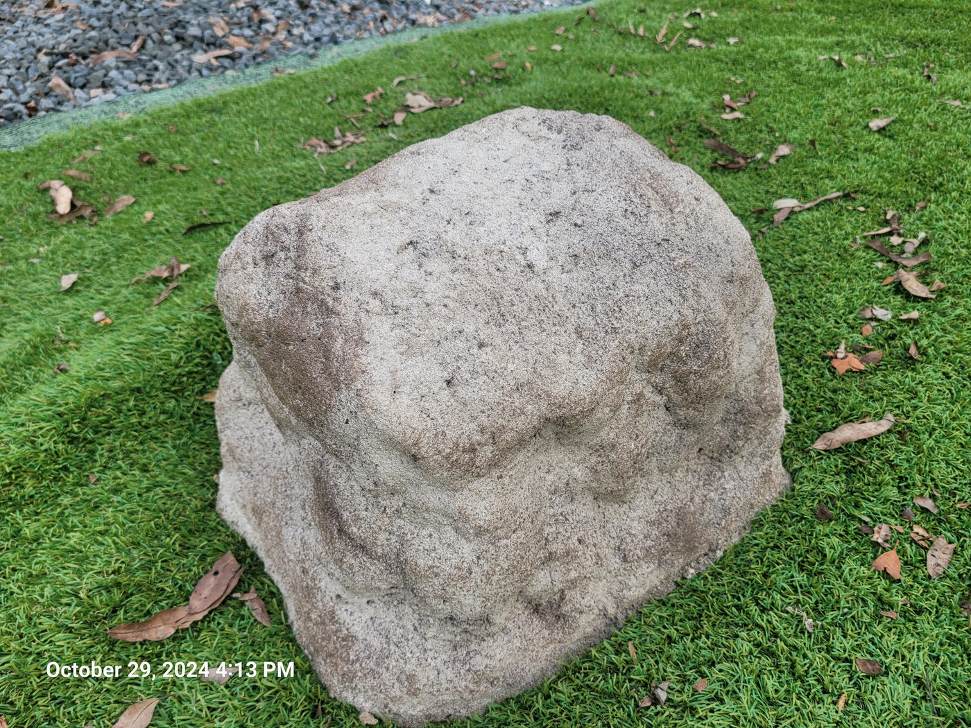 Proudly an original Australian product idea operating since 2009. Large Single Size Approx. 24 kg. Memorial Rock/Stone/Urn with a sealable internal cavity for the safe-keeping of a loved one's ashes. Holds one standard Australian sized ash container, plus memorabilia. Size Approx. 450mm x 390mm x 300mm (external). 270mm x 230mm x 170mm (interna...