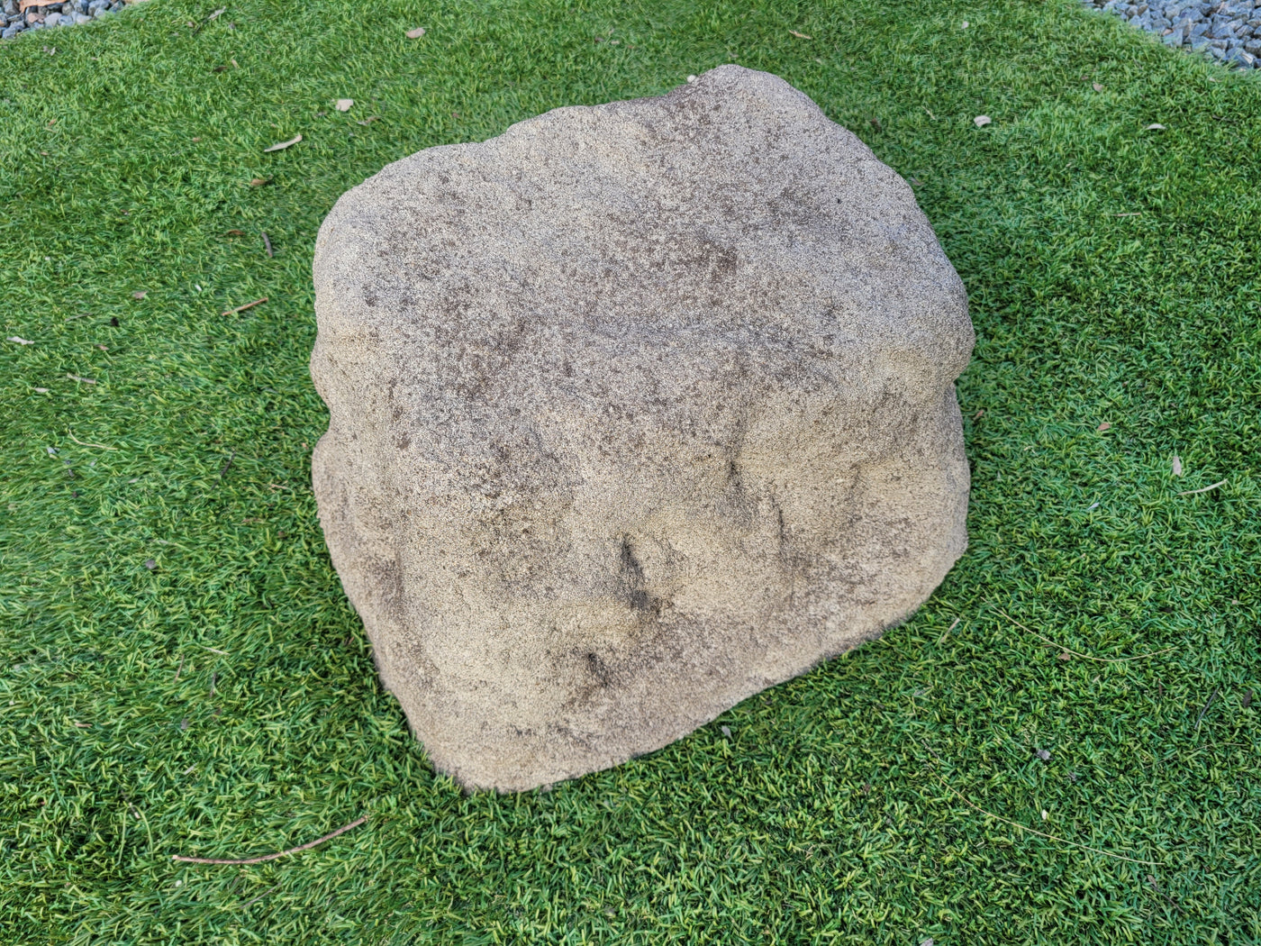 Proudly an original Australian product idea operating since 2009. Large Single Size Approx. 24 kg. Memorial Rock/Stone/Urn with a sealable internal cavity for the safe-keeping of a loved one's ashes. Holds one standard Australian sized ash container, plus memorabilia. Size Approx. 450mm x 390mm x 300mm (external). 270mm x 230mm x 170mm (interna...