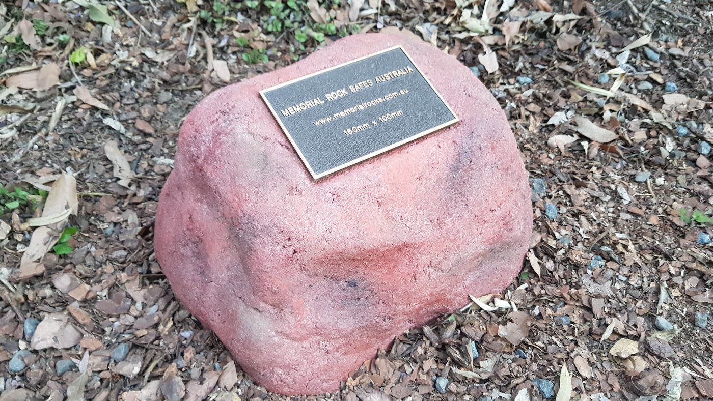 Memorial Rock Urns are a loving practical alternative for the safe keeping of a loved one's ashes. This Memorial rock has an incorporated flat space for up to a 150mm x 100mm x 4.5mm Plaque or our small heart plaque. (150mm x 100mm) PLAQUE SOLD SEPARATELY The blue plastic standard Australian sized cremation urn seen in the pictures demonstrate...