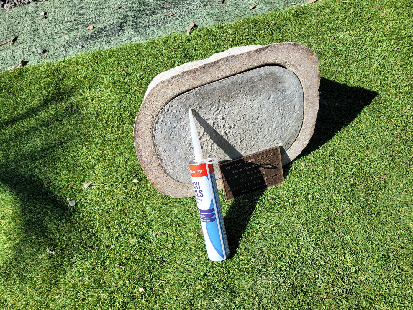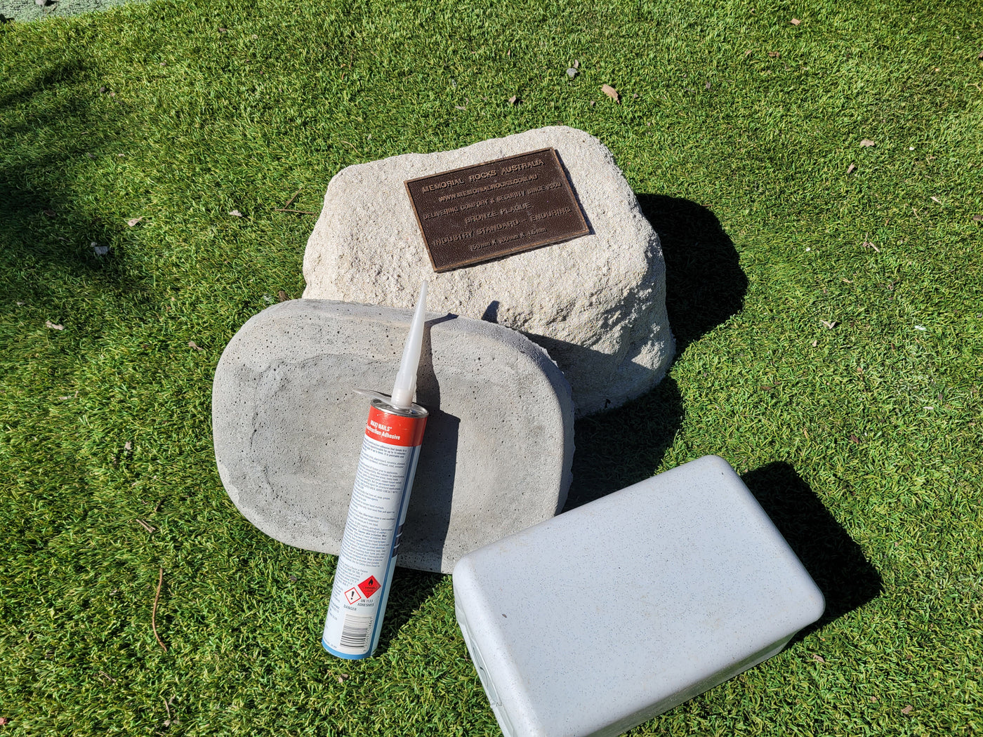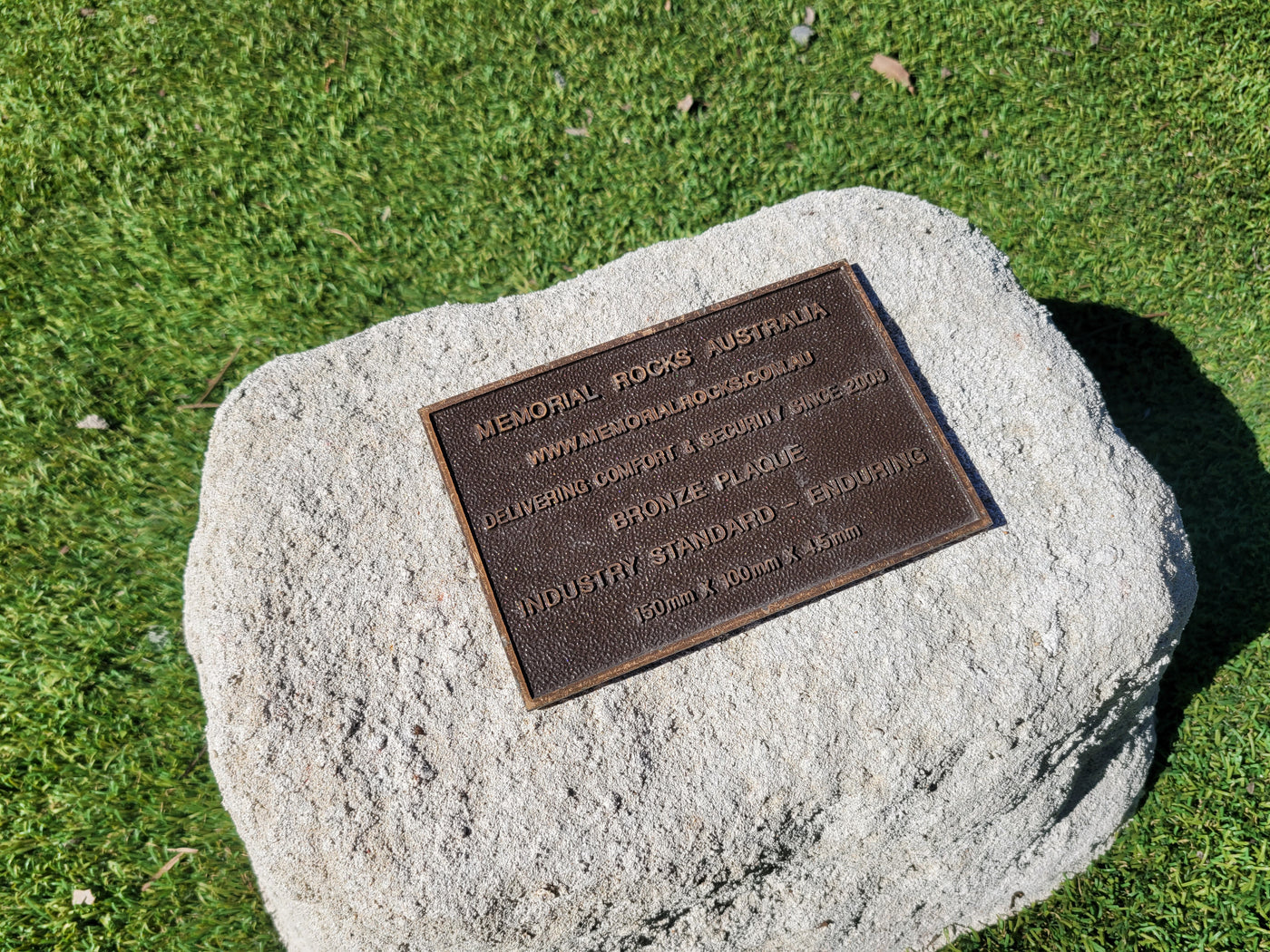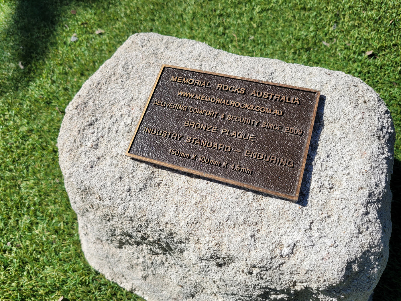 Memorial Rock Urns are a loving practical alternative for the safe keeping of a loved one's ashes. This Memorial rock has an incorporated flat space for up to a 180mm x 120mm x 4.5mm Plaque or our large heart plaque. PLAQUE SOLD SEPARATELY The blue plastic standard Australian sized cremation urn seen in the pictures demonstrates the size of t...