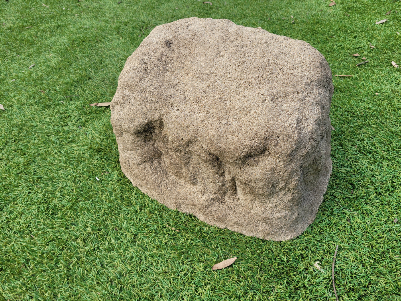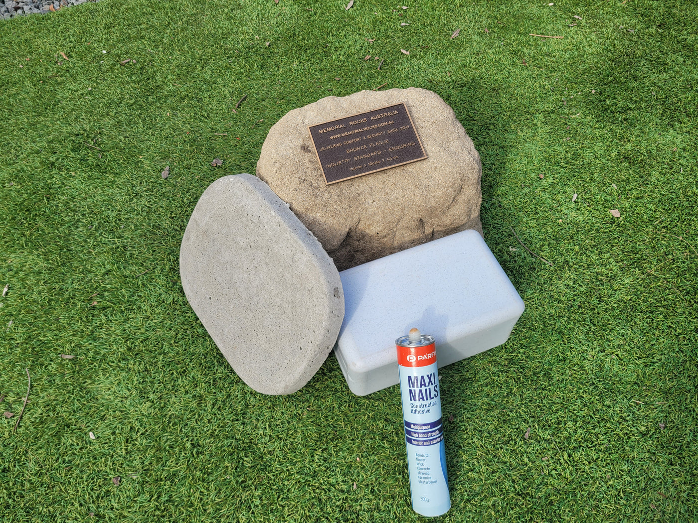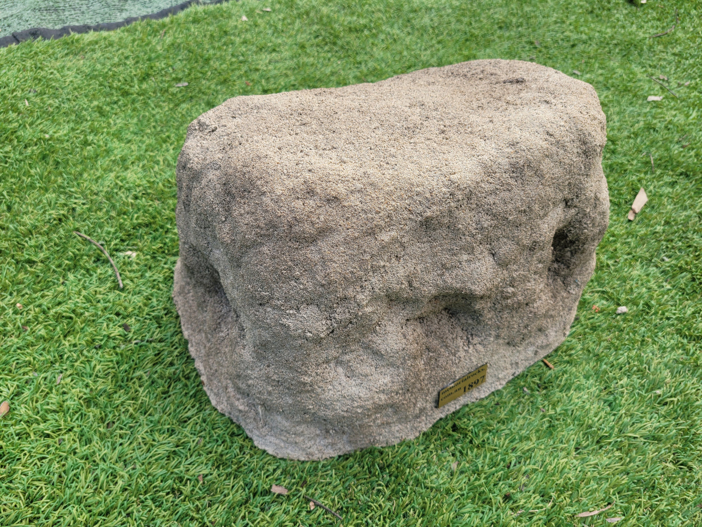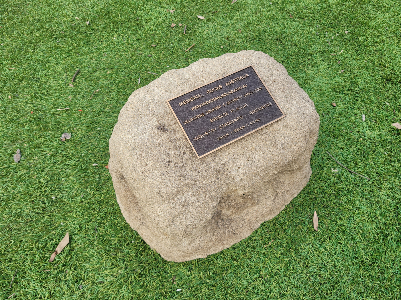 Memorial Rock Urns are a loving practical alternative for the safe keeping of a loved one's ashes. This Memorial rock has an incorporated flat space for up to a 180mm x 120mm x 4.5mm Plaque or our large heart plaque. PLAQUE SOLD SEPARATELY The blue plastic standard Australian sized cremation urn seen in the pictures demonstrates the size of t...