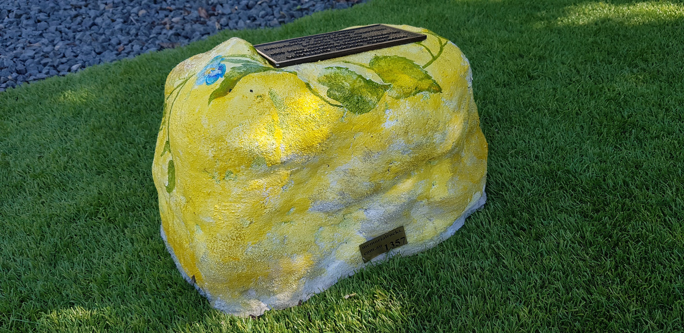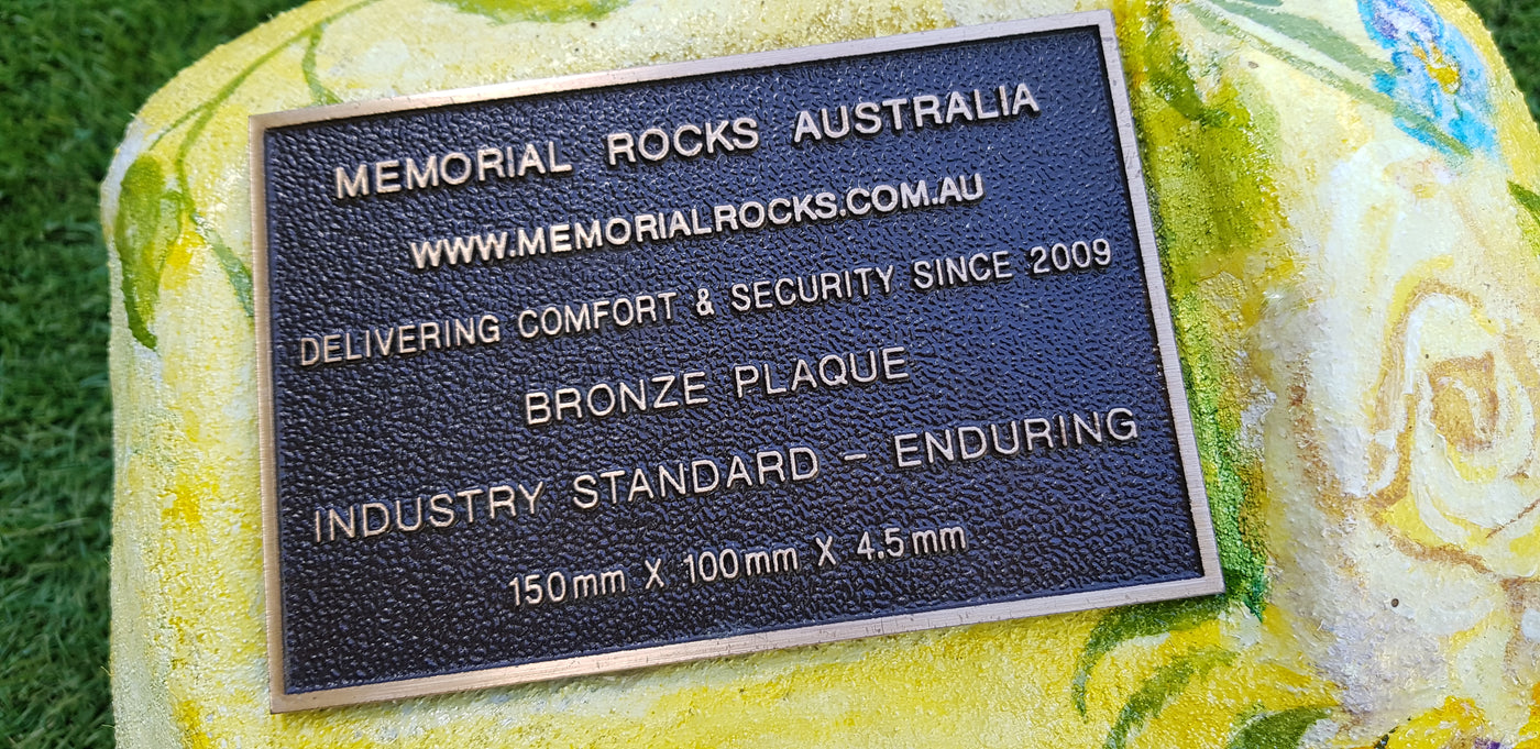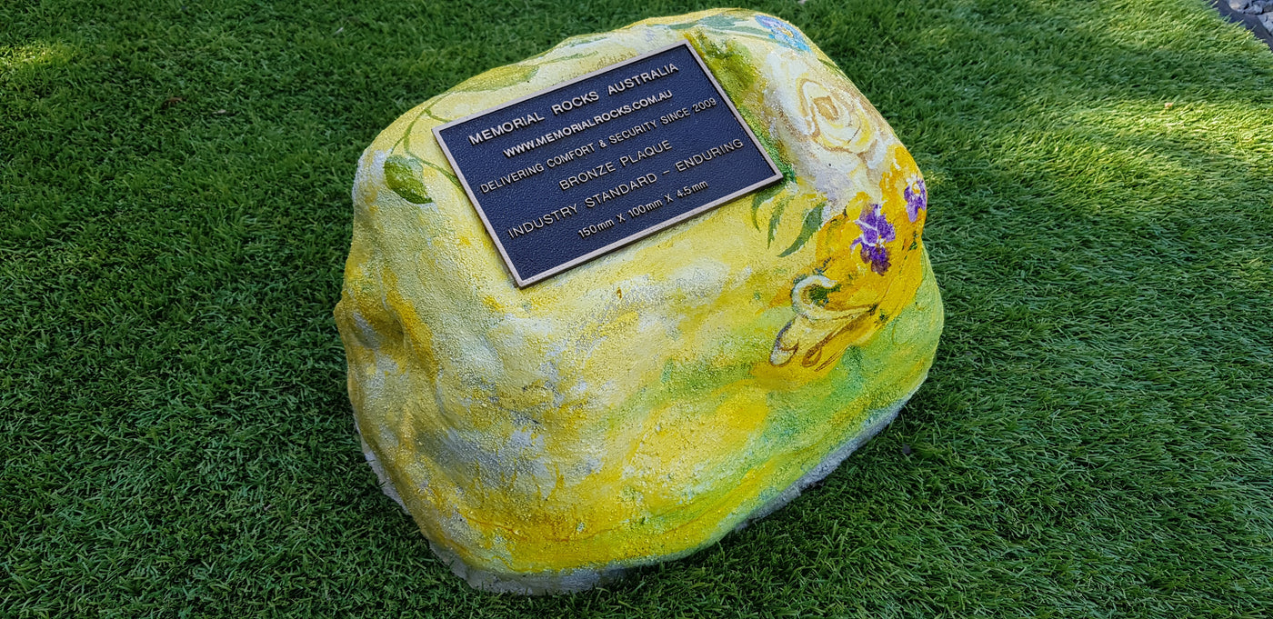 Memorial Rock Urns are a loving practical alternative for the safe keeping of a loved one's ashes. This Memorial Rock Urn has a small internal sealed container for partial ash interment. This Partial Ash Urn Memorial rock has an incorporated flat space for a 100 mm x 75mm x4.5mm industry standard bronze plaque. PLAQUE SOLD SEPARATELY Proudly...