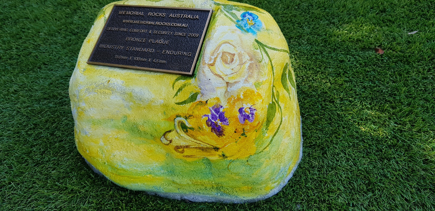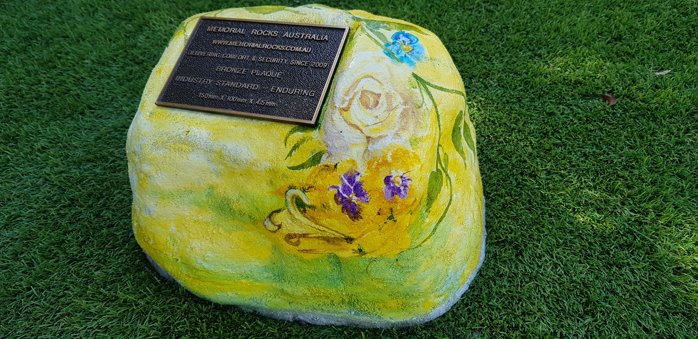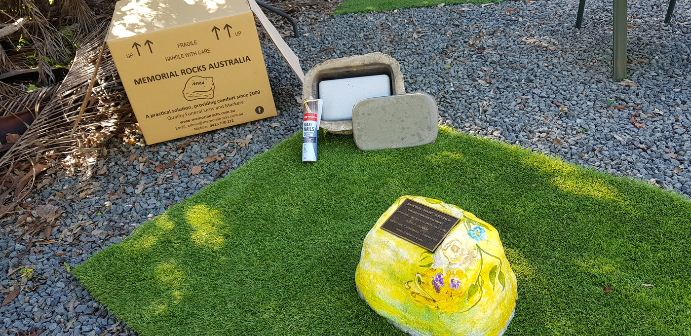 Memorial Rock Urns are a loving practical alternative for the safe keeping of a loved one's ashes. This Memorial Rock Urn has a small internal sealed container for partial ash interment. This Partial Ash Urn Memorial rock has an incorporated flat space for a 100 mm x 75mm x4.5mm industry standard bronze plaque. Proudly Australian made, origin...
