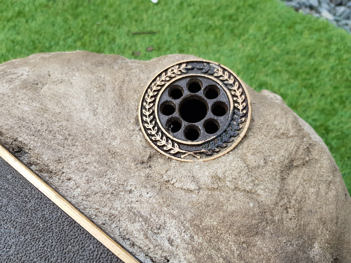 Memorial Rock Urns are a loving practical alternative for the safe keeping of a loved one's ashes. This Memorial Rock Urn has a small internal sealed container for partial ash interment. This Partial Ash Urn Memorial rock has an incorporated flat space for a 100 mm x 75mm x4.5mm industry standard bronze plaque. PLAQUE SOLD SEPARATELY Proudly...