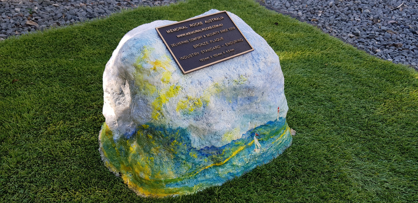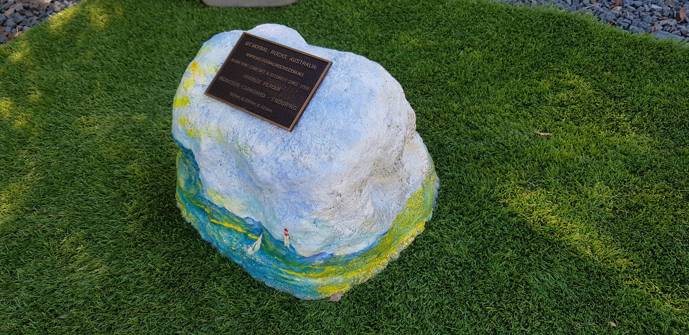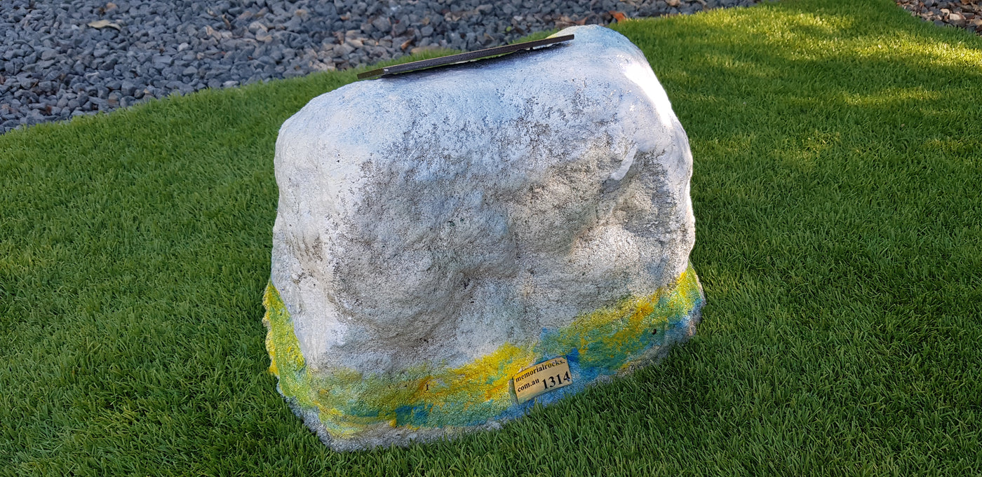 Memorial Rock Urns are a loving practical alternative for the safe keeping of a loved one's ashes. This Memorial Rock Urn has a small internal sealed container for partial ash interment. This Partial Ash Urn Memorial rock has an incorporated flat space for a 100 mm x 75mm x4.5mm industry standard bronze plaque. PLAQUE SOLD SEPARATELY Proudly...