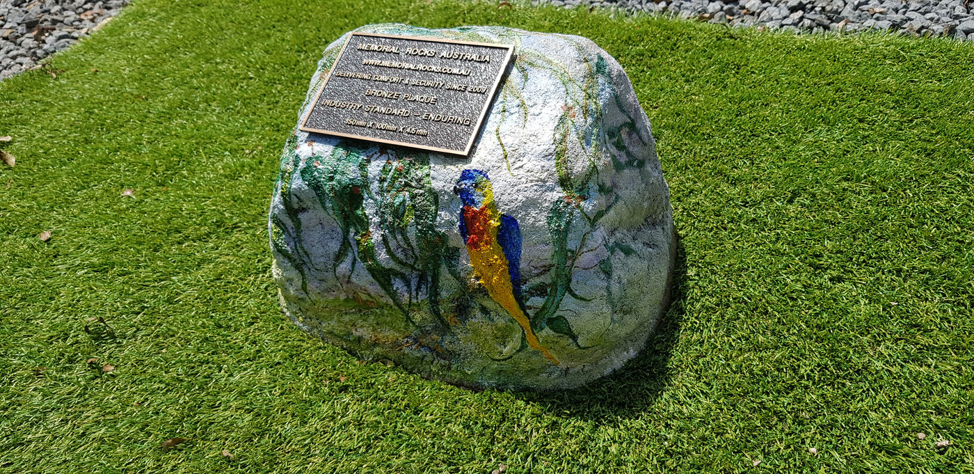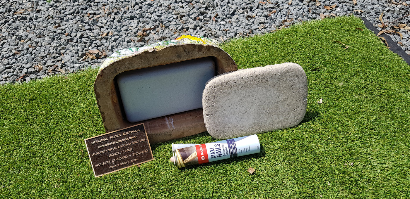 Memorial Rock Urns are a loving practical alternative for the safe keeping of a loved one's ashes. This Memorial Rock Urn has a small internal sealed container for partial ash interment. This Partial Ash Urn Memorial rock has an incorporated flat space for a 100 mm x 75mm x4.5mm industry standard bronze plaque. PLAQUE SOLD SEPARATELY Proudly...