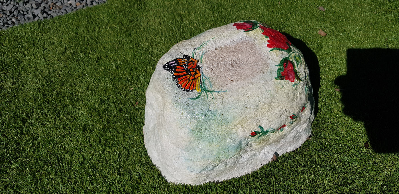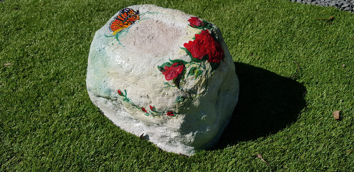 Memorial Rock Urns are a loving practical alternative for the safe keeping of a loved one's ashes. This Memorial Rock Urn has a small internal sealed container for partial ash interment. This Partial Ash Urn Memorial rock has an incorporated flat space for a 100 mm x 75mm x4.5mm industry standard bronze plaque. PLAQUE SOLD SEPARATELY Proudly...