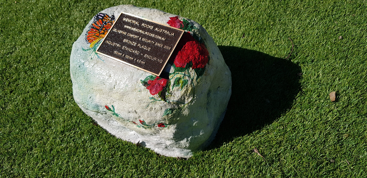 Memorial Rock Urns are a loving practical alternative for the safe keeping of a loved one's ashes. This Memorial Rock Urn has a small internal sealed container for partial ash interment. This Partial Ash Urn Memorial rock has an incorporated flat space for a 100 mm x 75mm x4.5mm industry standard bronze plaque. Proudly Australian made, origin...