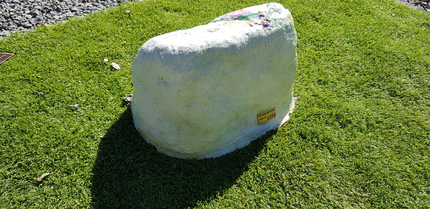 Memorial Rock Urns are a loving practical alternative for the safe keeping of a loved one's ashes. This Memorial Rock Urn has a small internal sealed container for partial ash interment. This Partial Ash Urn Memorial rock has an incorporated flat space for a 100 mm x 75mm x4.5mm industry standard bronze plaque. Proudly Australian made, origin...