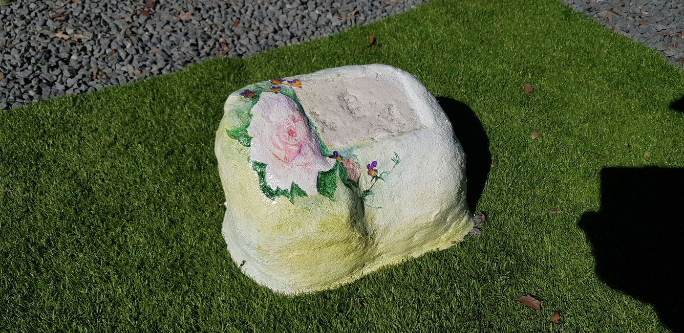 Memorial Rock Urns are a loving practical alternative for the safe keeping of a loved one's ashes. This Memorial Rock Urn has a small internal sealed container for partial ash interment. This Partial Ash Urn Memorial rock has an incorporated flat space for a 100 mm x 75mm x4.5mm industry standard bronze plaque. PLAQUE SOLD SEPARATELY Proudly...
