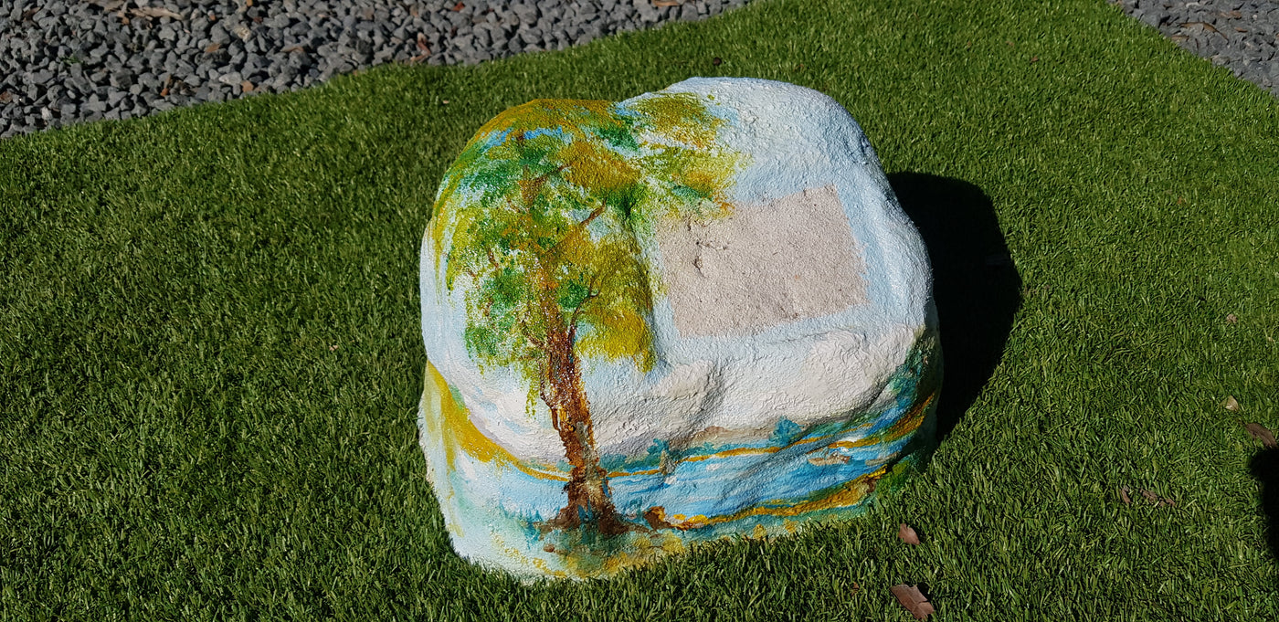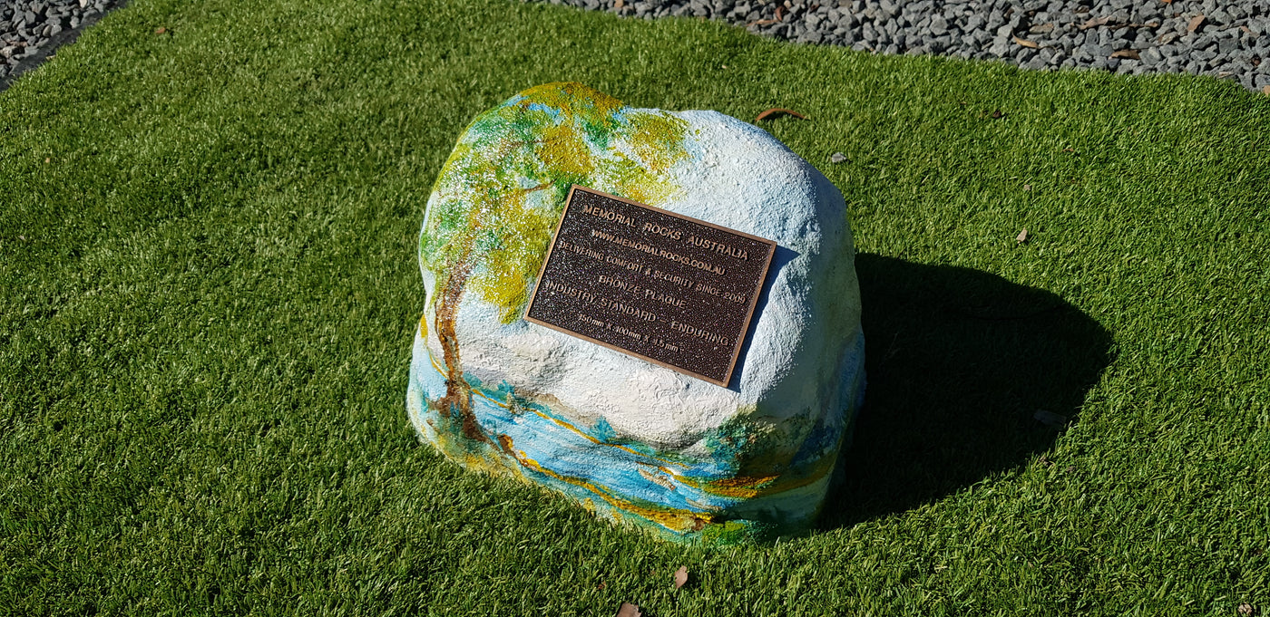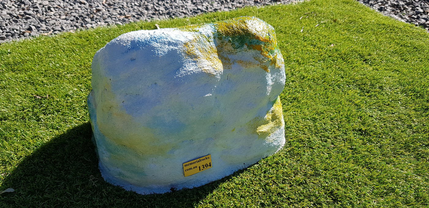 Memorial Rock Urns are a loving practical alternative for the safe keeping of a loved one's ashes. This Memorial Rock Urn has a small internal sealed container for partial ash interment. This Partial Ash Urn Memorial rock has an incorporated flat space for a 100 mm x 75mm x4.5mm industry standard bronze plaque. Proudly Australian made, origin...