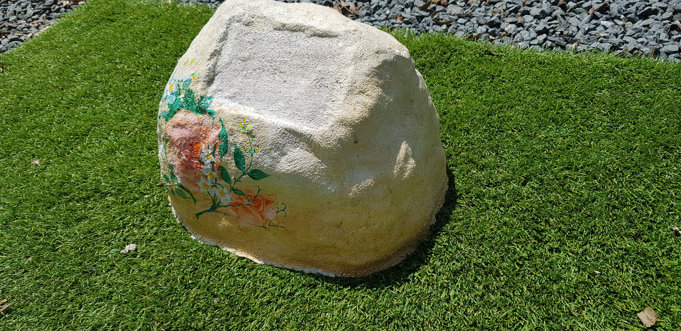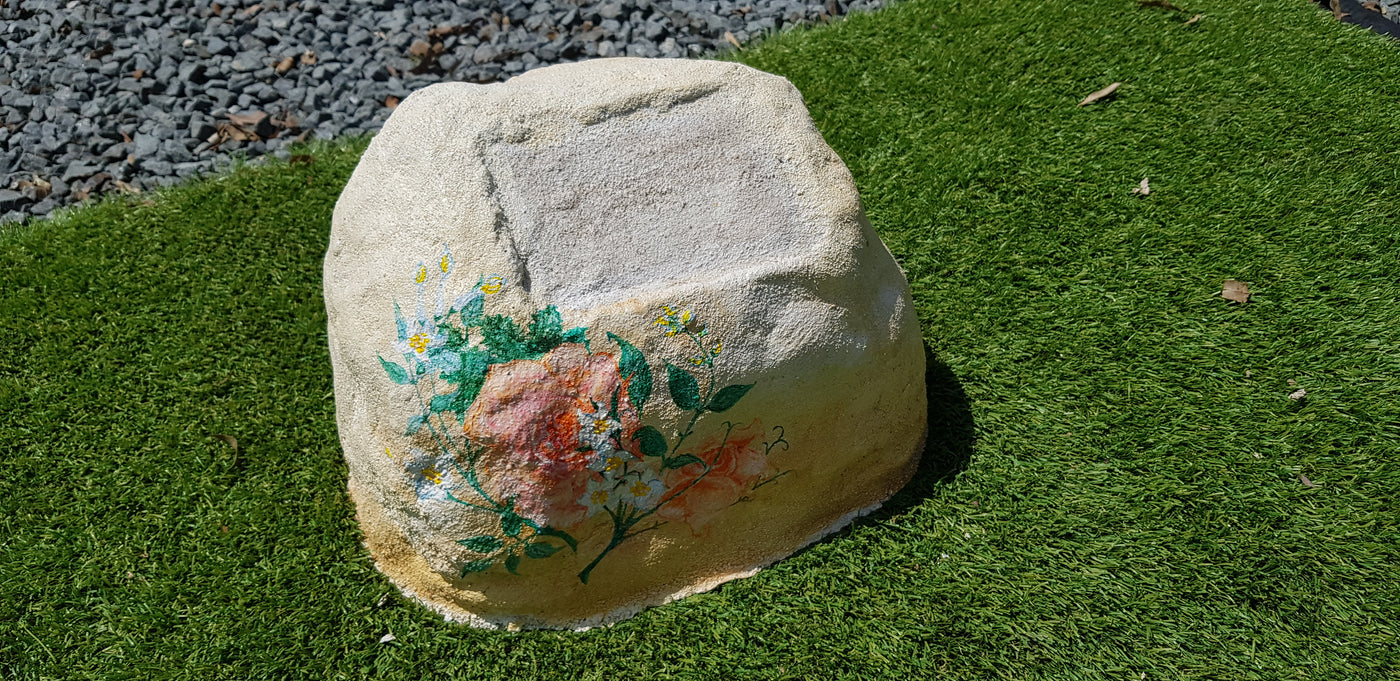Memorial Rock Urns are a loving practical alternative for the safe keeping of a loved one's ashes. This Memorial Rock Urn has a small internal sealed container for partial ash interment. This Partial Ash Urn Memorial rock has an incorporated flat space for a 100 mm x 75mm x4.5mm industry standard bronze plaque. PLAQUE SOLD SEPARATELY Proudly...