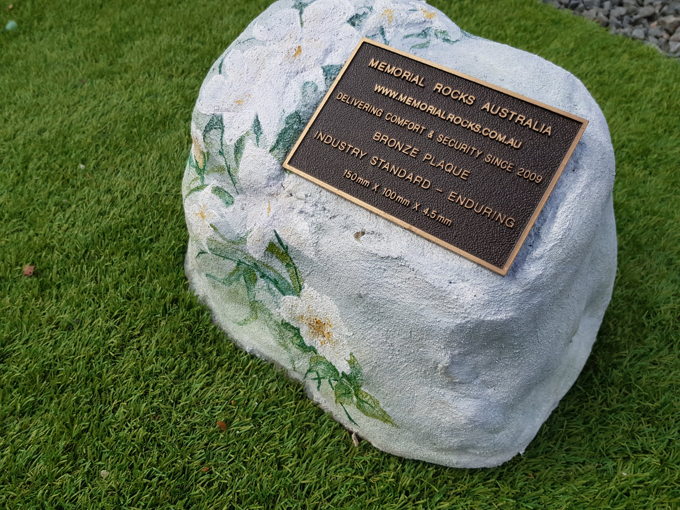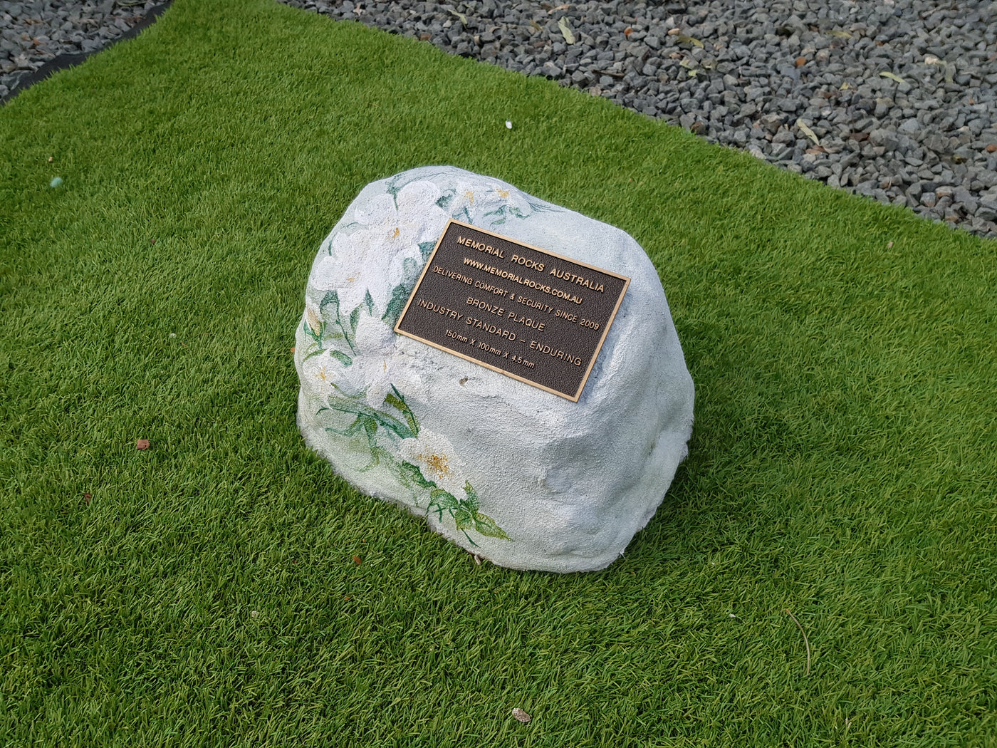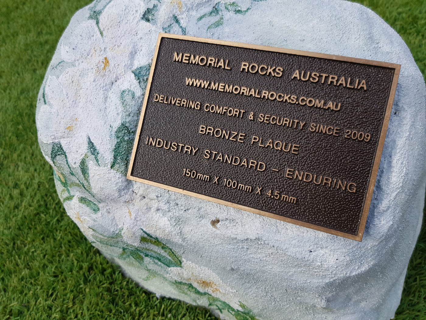 Memorial Rock Urns are a loving practical alternative for the safe keeping of a loved one's ashes. This Memorial Rock Urn has a small internal sealed container for partial ash interment. This Partial Ash Urn Memorial rock has an incorporated flat space for a 100 mm x 75mm x4.5mm industry standard bronze plaque. PLAQUE SOLD SEPARATELY Proudly...