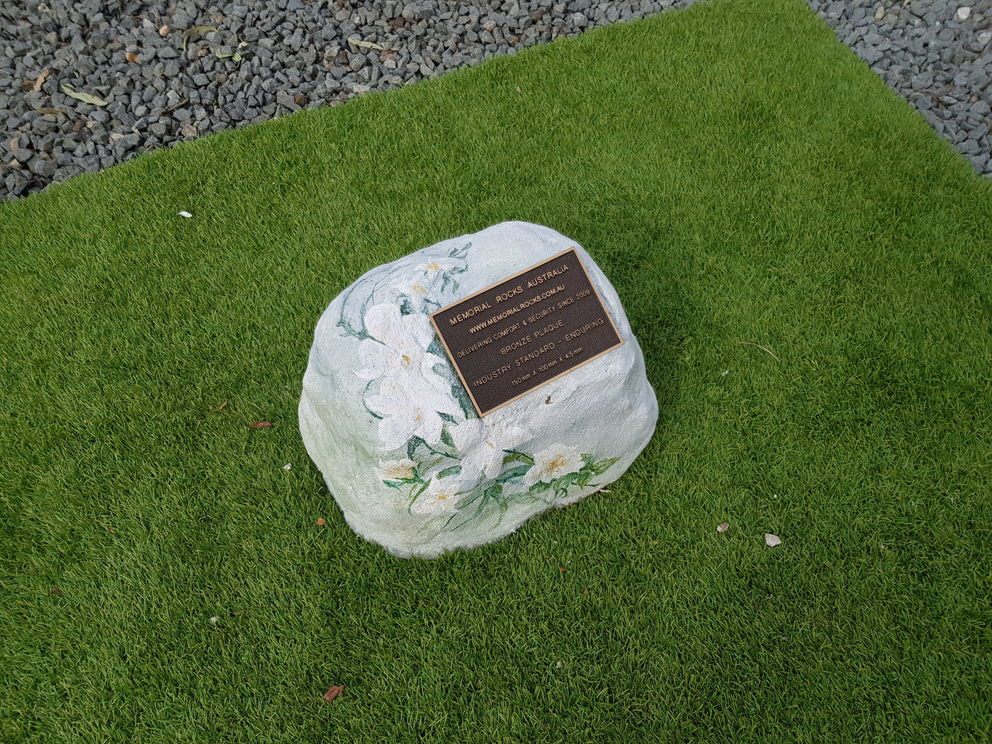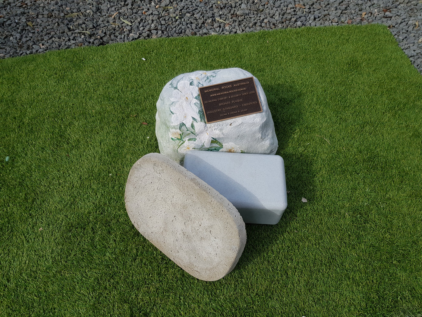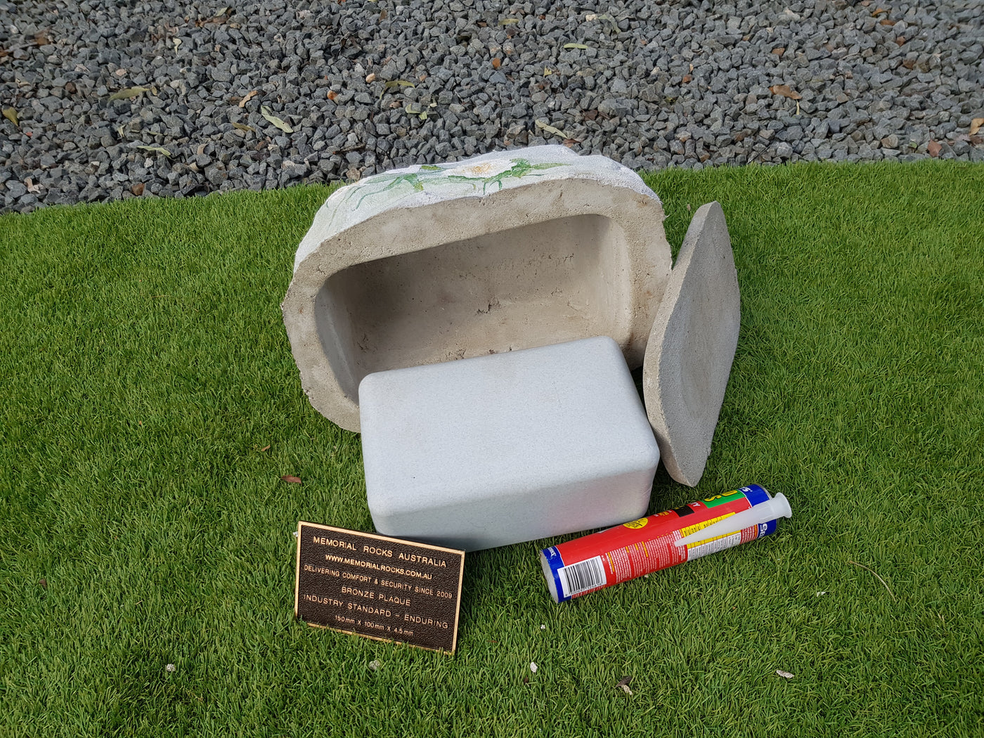 Memorial Rock Urns are a loving practical alternative for the safe keeping of a loved one's ashes. This Memorial Rock Urn has a small internal sealed container for partial ash interment. This Partial Ash Urn Memorial rock has an incorporated flat space for a 100 mm x 75mm x4.5mm industry standard bronze plaque. Proudly Australian made, origin...