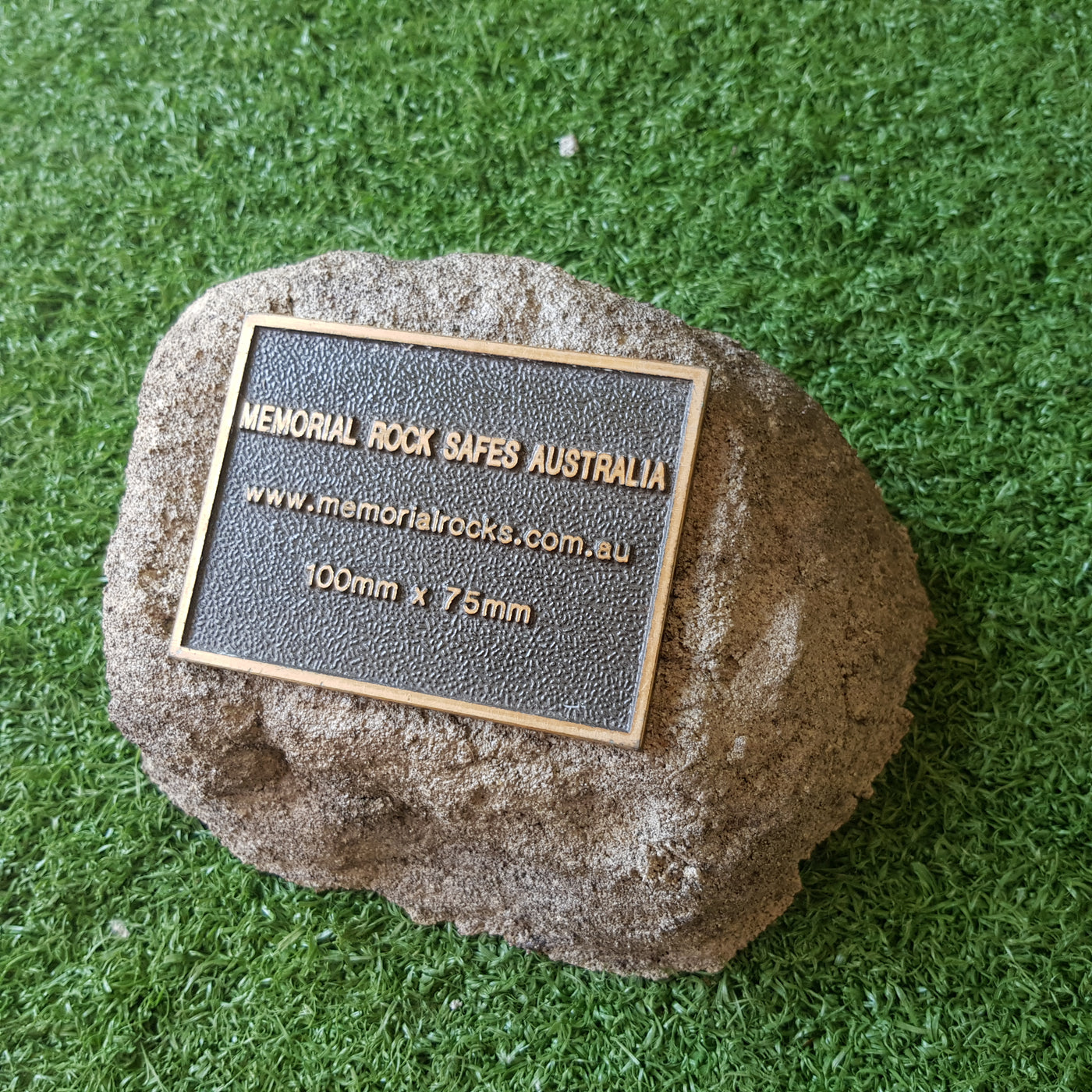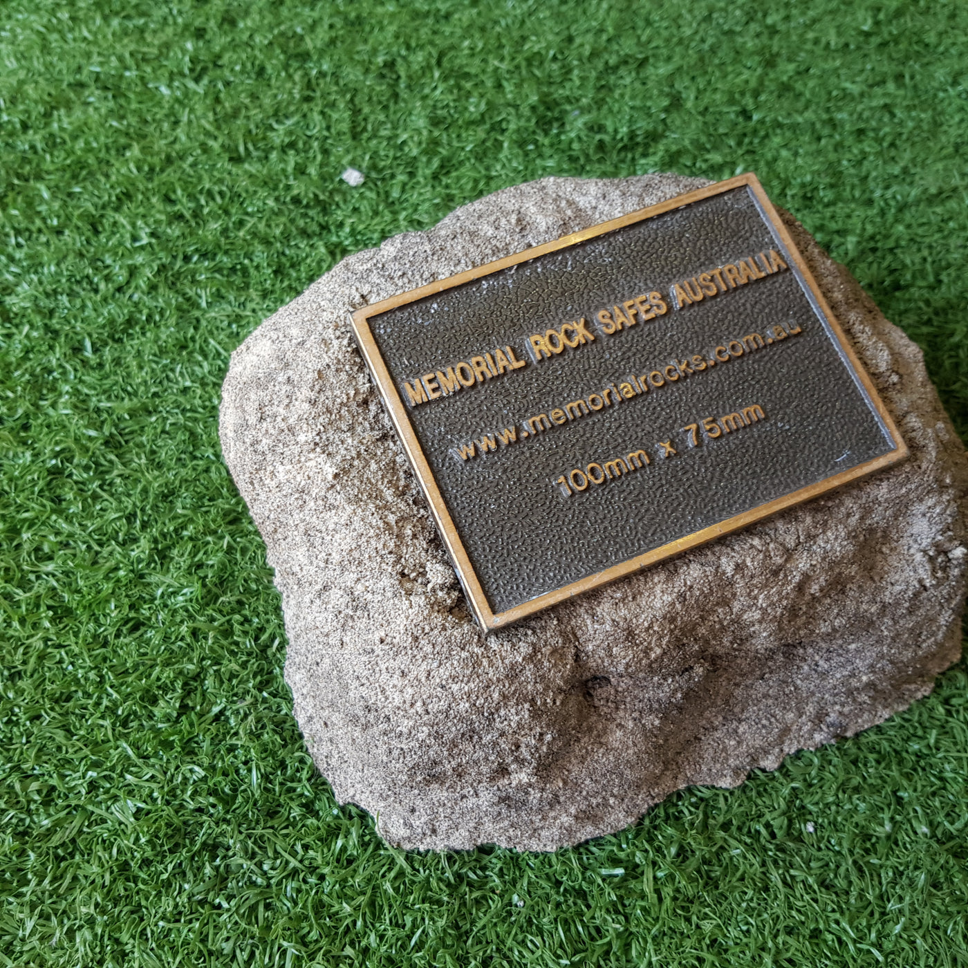 Memorial Rock Urns are a loving practical alternative for the safe keeping of a loved one's ashes. This Memorial Rock Urn has a small internal sealed container for partial ash interment. This Partial Ash Urn Memorial rock has an incorporated flat space for a industry standard bronze plaque 80 mm x 40mm x4.5mm or a 150mm x 100mm x 4.5 mm hear...