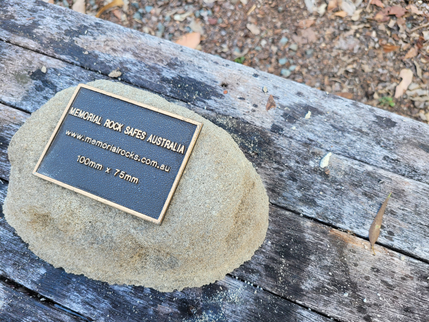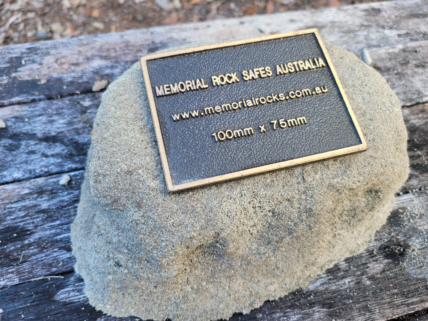 Memorial Rock Urns are a loving practical alternative for the safe keeping of a loved one's ashes. This Memorial Rock Urn has a small internal sealed container for partial ash interment. This Partial Ash Urn Memorial rock has an incorporated flat space for a industry standard bronze plaque 80 mm x 40mm x4.5mm or a 150mm x 100mm x 4.5 mm hear...
