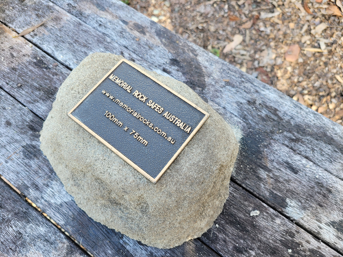 Memorial Rock Urns are a loving practical alternative for the safe keeping of a loved one's ashes. This Memorial Rock Urn has a small internal sealed container for partial ash interment. This Partial Ash Urn Memorial rock has an incorporated flat space for a industry standard bronze plaque 80 mm x 40mm x4.5mm or a 150mm x 100mm x 4.5 mm hear...