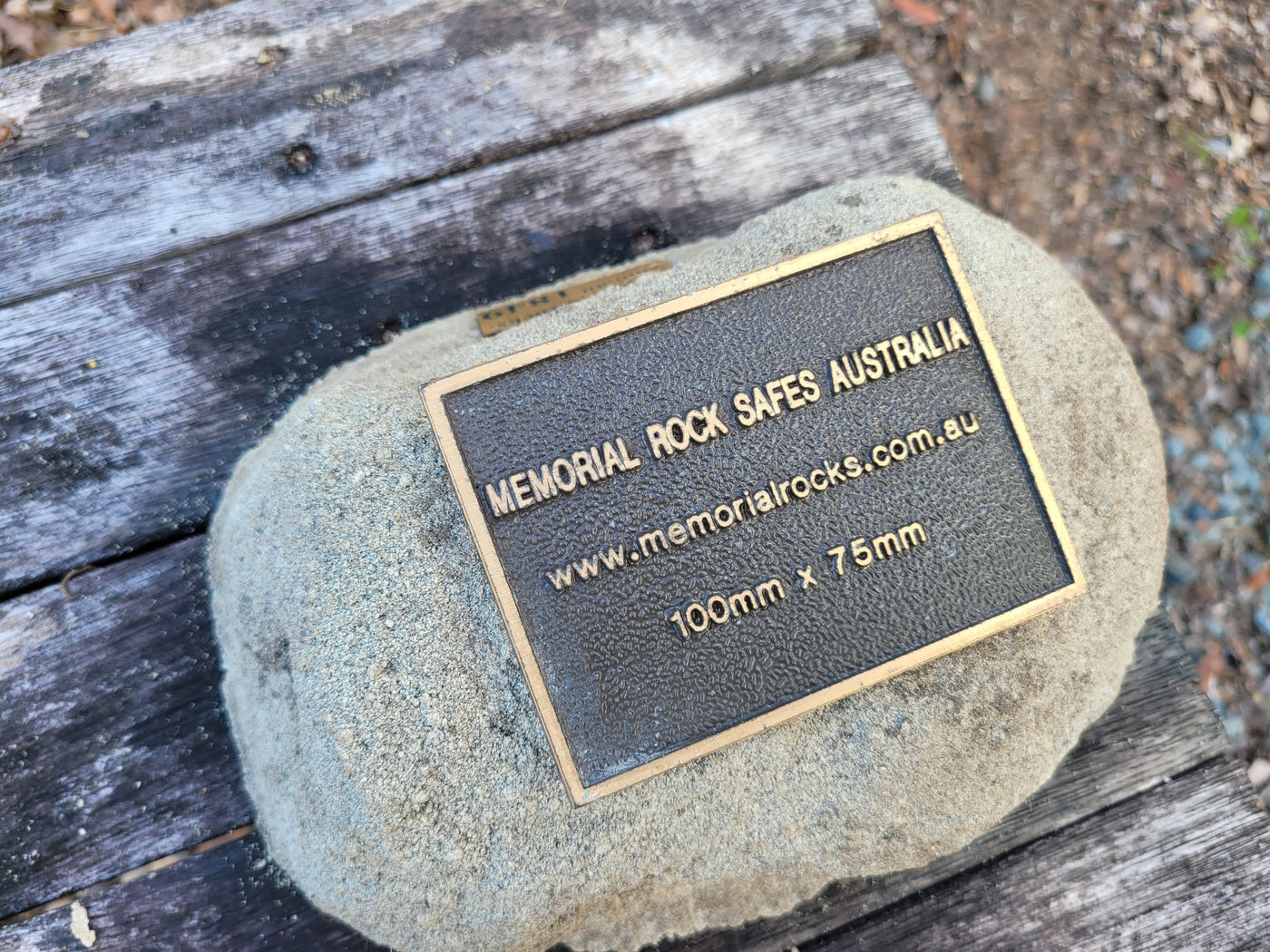 Memorial Rock Urns are a loving practical alternative for the safe keeping of a loved one's ashes. This Memorial Rock Urn has a small internal sealed container for partial ash interment. This Partial Ash Urn Memorial rock has an incorporated flat space for a industry standard bronze plaque 80 mm x 40mm x4.5mm or a 150mm x 100mm x 4.5 mm hear...