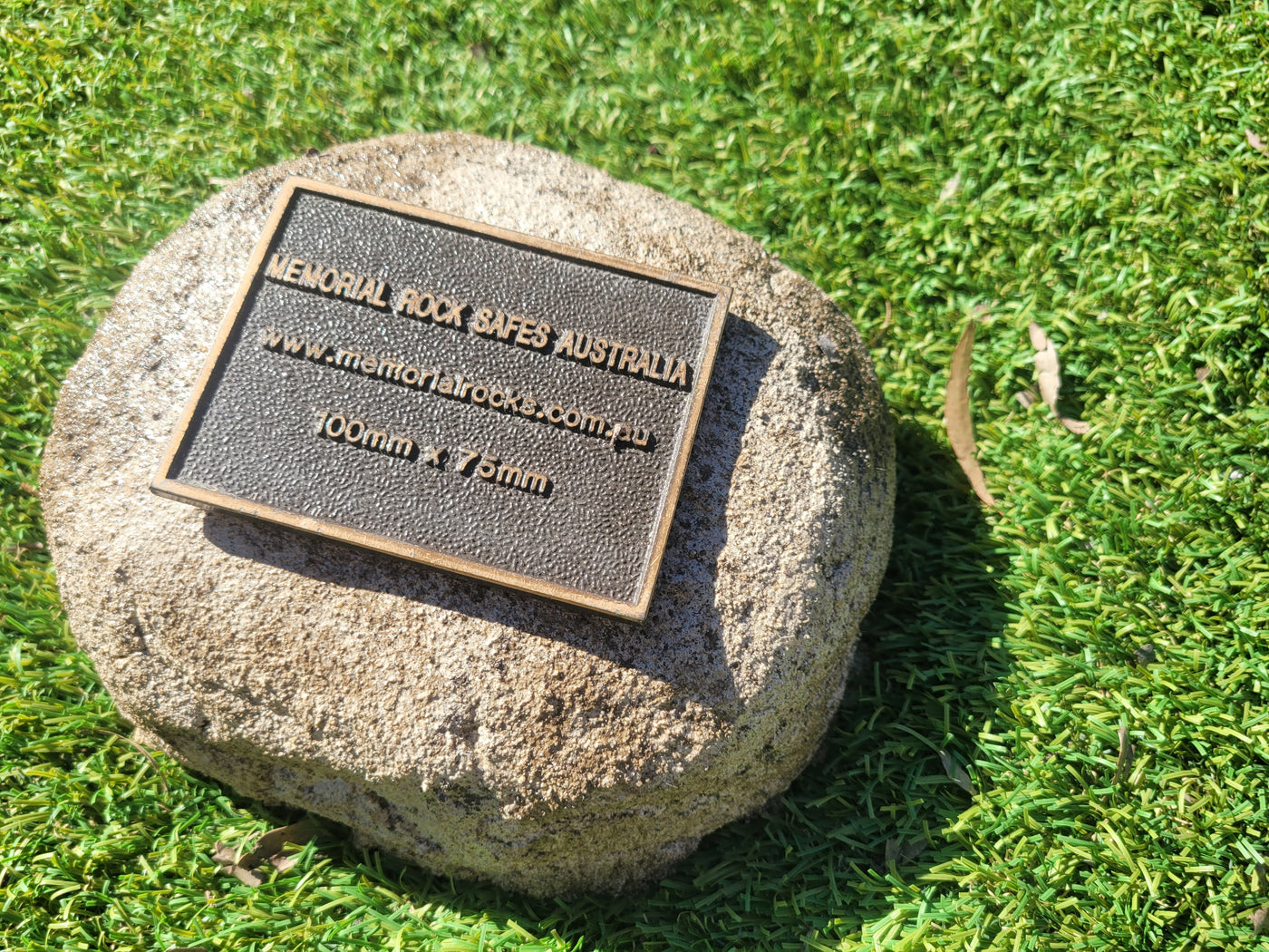 Memorial Rock Urns are a loving practical alternative for the safe keeping of a loved one's ashes. This Memorial Rock Urn has a small internal sealed container for partial ash interment. This Partial Ash Urn Memorial rock has an incorporated flat space for a industry standard bronze plaque 80 mm x 40mm x4.5mm or a 150mm x 100mm x 4.5 mm hear...