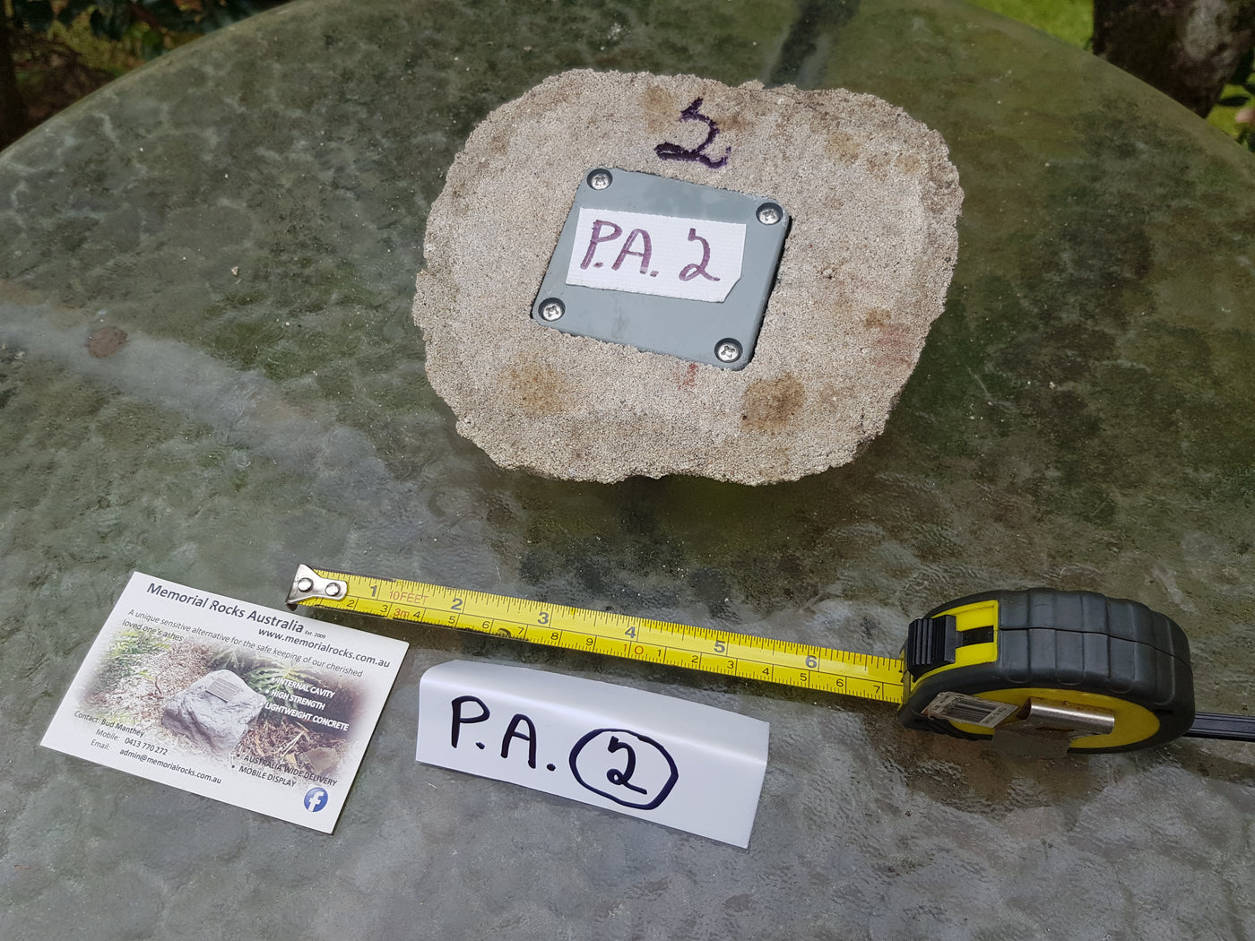 Memorial Rock Urns are a loving practical alternative for the safe keeping of a loved one's ashes. This Memorial Rock Urn has a small internal sealed container for partial ash interment. This Partial Ash Urn Memorial rock has an incorporated flat space for a 100 mm x 75mm x4.5mm industry standard bronze plaque. PLAQUE SOLD SEPARATELY Proudly...