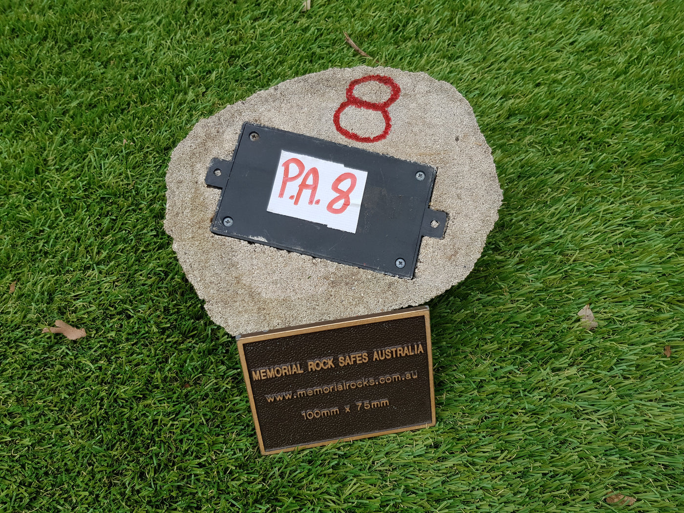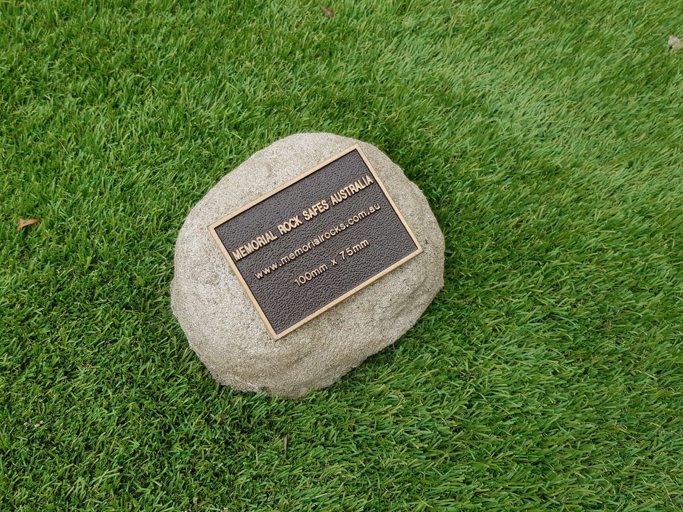 Memorial Rock Urns are a loving practical alternative for the safe keeping of a loved one's ashes. This Memorial Rock Urn has a small internal sealed container for partial ash interment. This Partial Ash Urn Memorial rock has an incorporated flat space for a industry standard bronze plaque 80 mm x 40mm x4.5mm or a 150mm x 100mm x 4.5 mm hear...