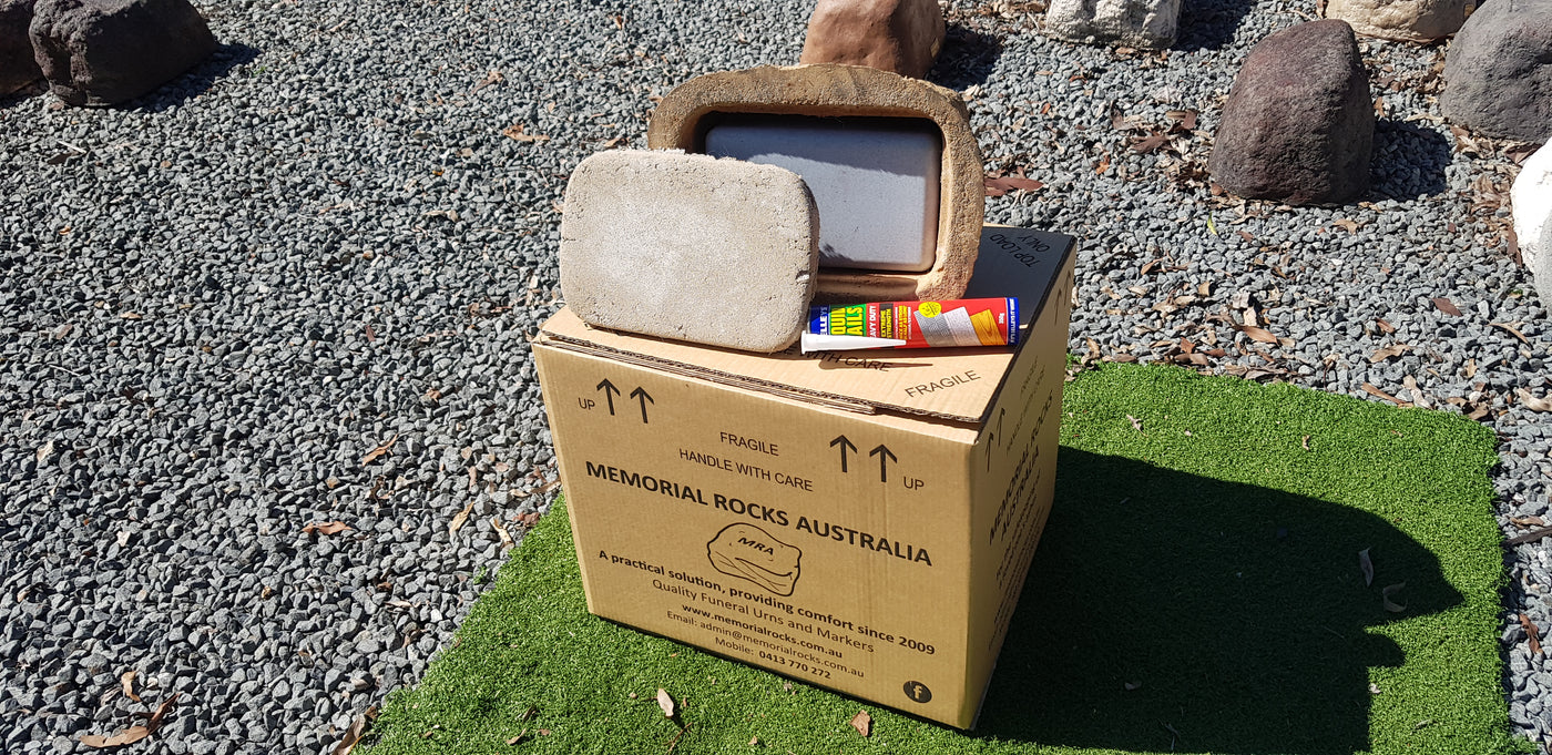 Memorial Rock Urns are a loving practical alternative for the safe keeping of a loved one's ashes. This Memorial rock has an incorporated flat indented recess space for a 150mm x 100mm x4.5mm industry standard bronze plaque. PLAQUE SOLD SEPARATELY Proudly an Australian made, original product. Operating since 2009. Regular size. Lightweight (a...
