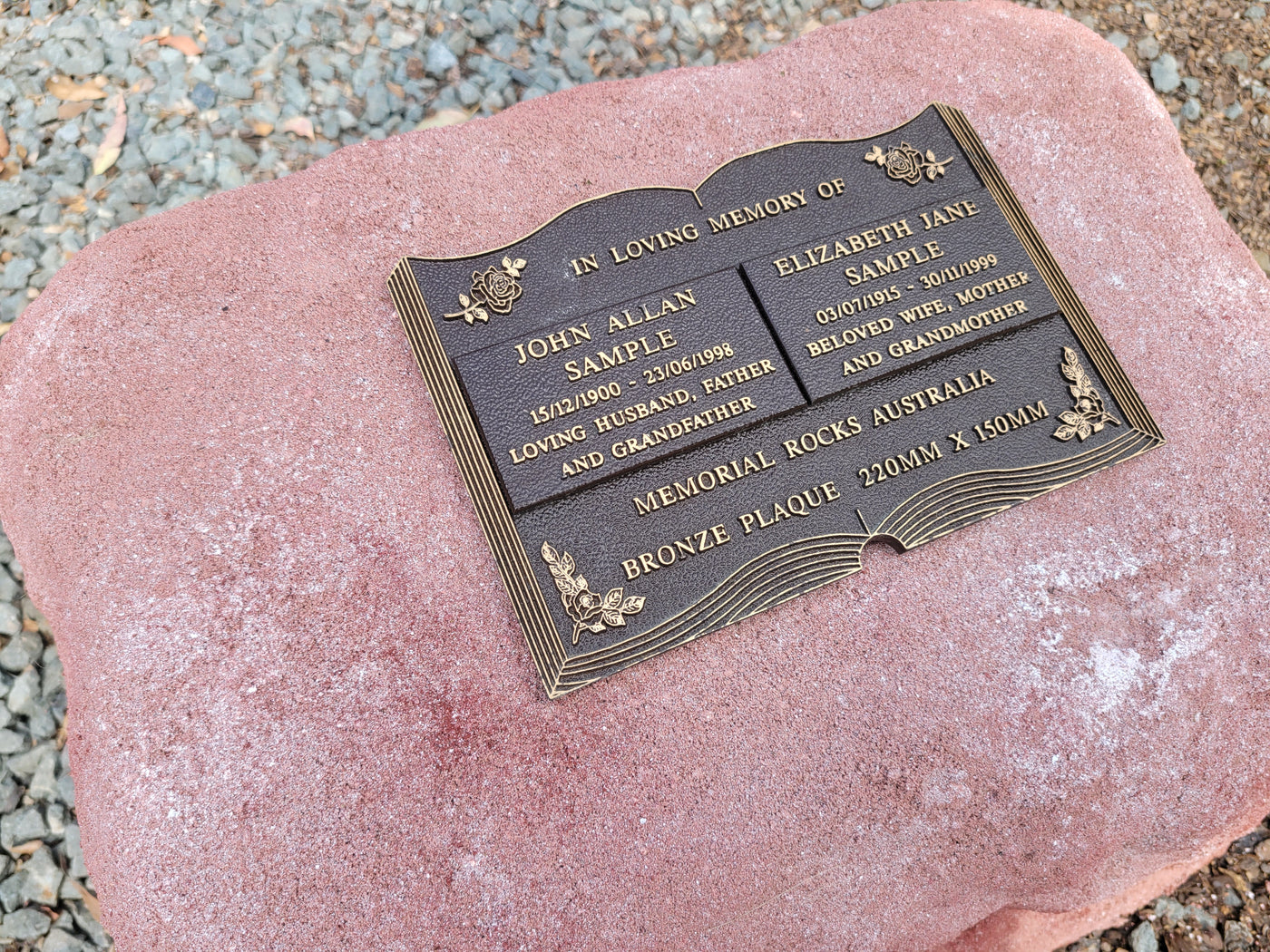 This Memorial Rock Urn has a flat section to suit a Large Plaque up to 350mm x220mm. We recommend  300 mm x 200mm (PLAQUE SOLD SEPARATELY.) See the Plaque section on the Home page.