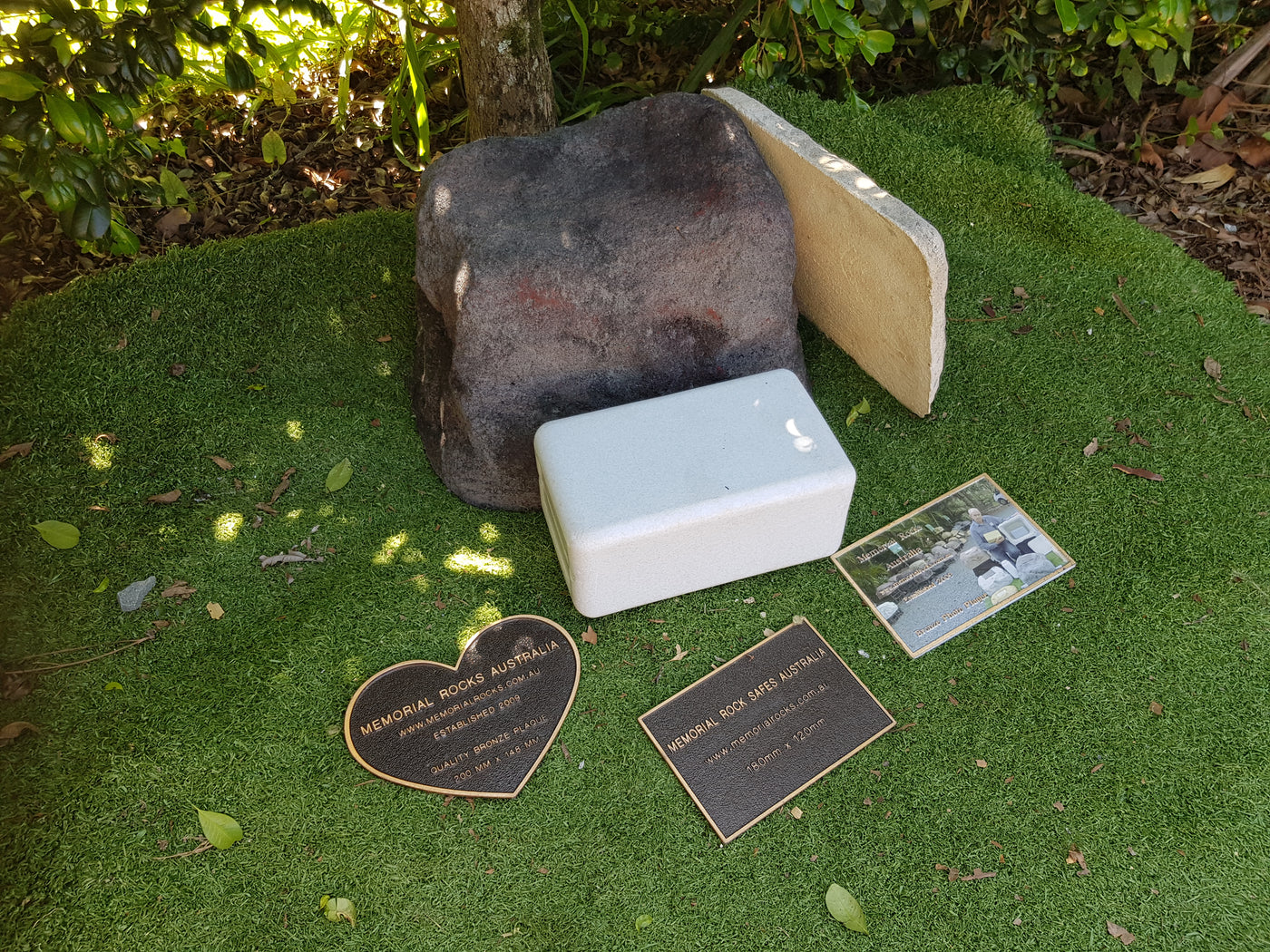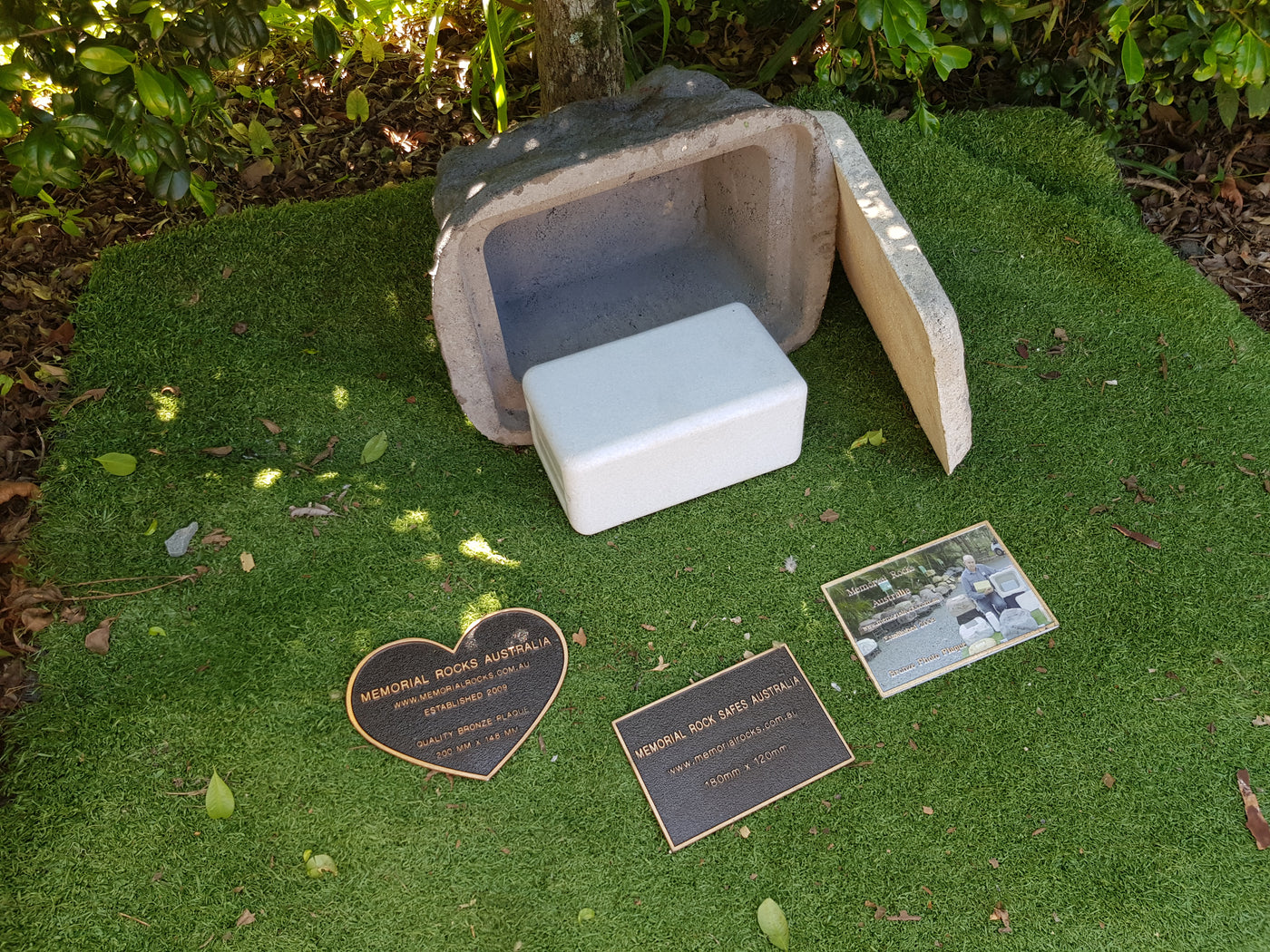 Proudly an original Australian product idea operating since 2009. Large Single Size Approx. 24 kg. Memorial Rock/Stone/Urn with a sealable internal cavity for the safe-keeping of a loved one's ashes. Holds one standard Australian sized ash container, plus memorabilia. Size Approx. 450mm x 390mm x 300mm (external). 270mm x 230mm x 170mm (interna...