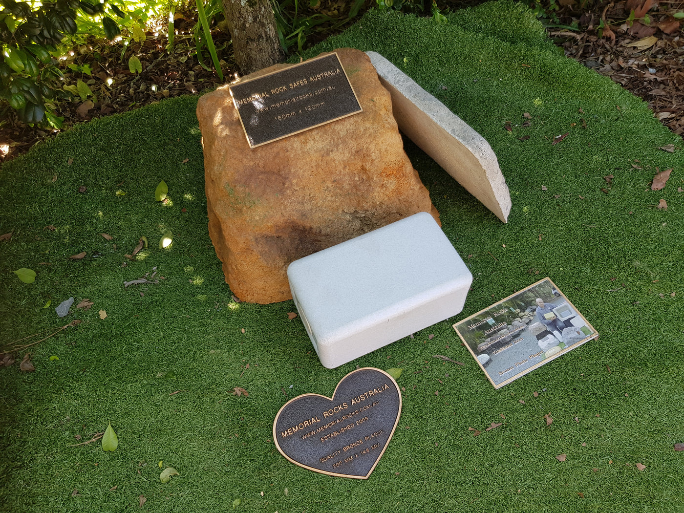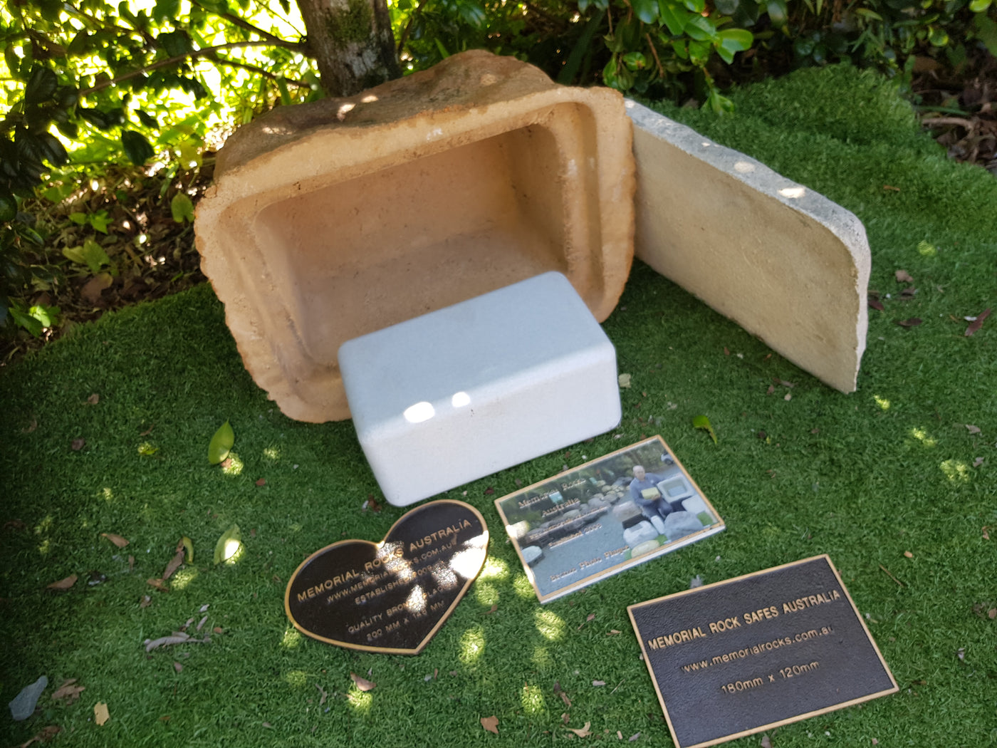 Proudly an original Australian product idea operating since 2009. Large Single Size Approx. 24 kg. Memorial Rock/Stone/Urn with a sealable internal cavity for the safe-keeping of a loved one's ashes. Holds one standard Australian sized ash container, plus memorabilia. Size Approx. 450mm x 390mm x 300mm (external). 270mm x 230mm x 170mm (interna...