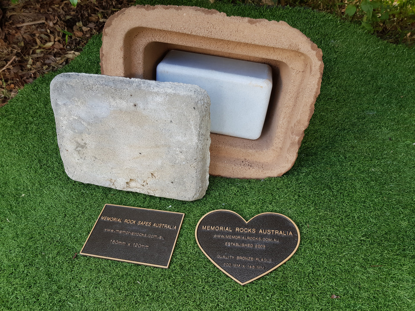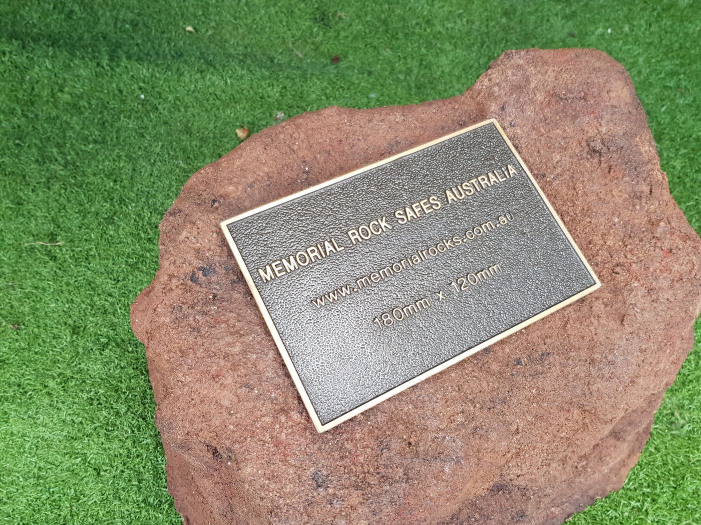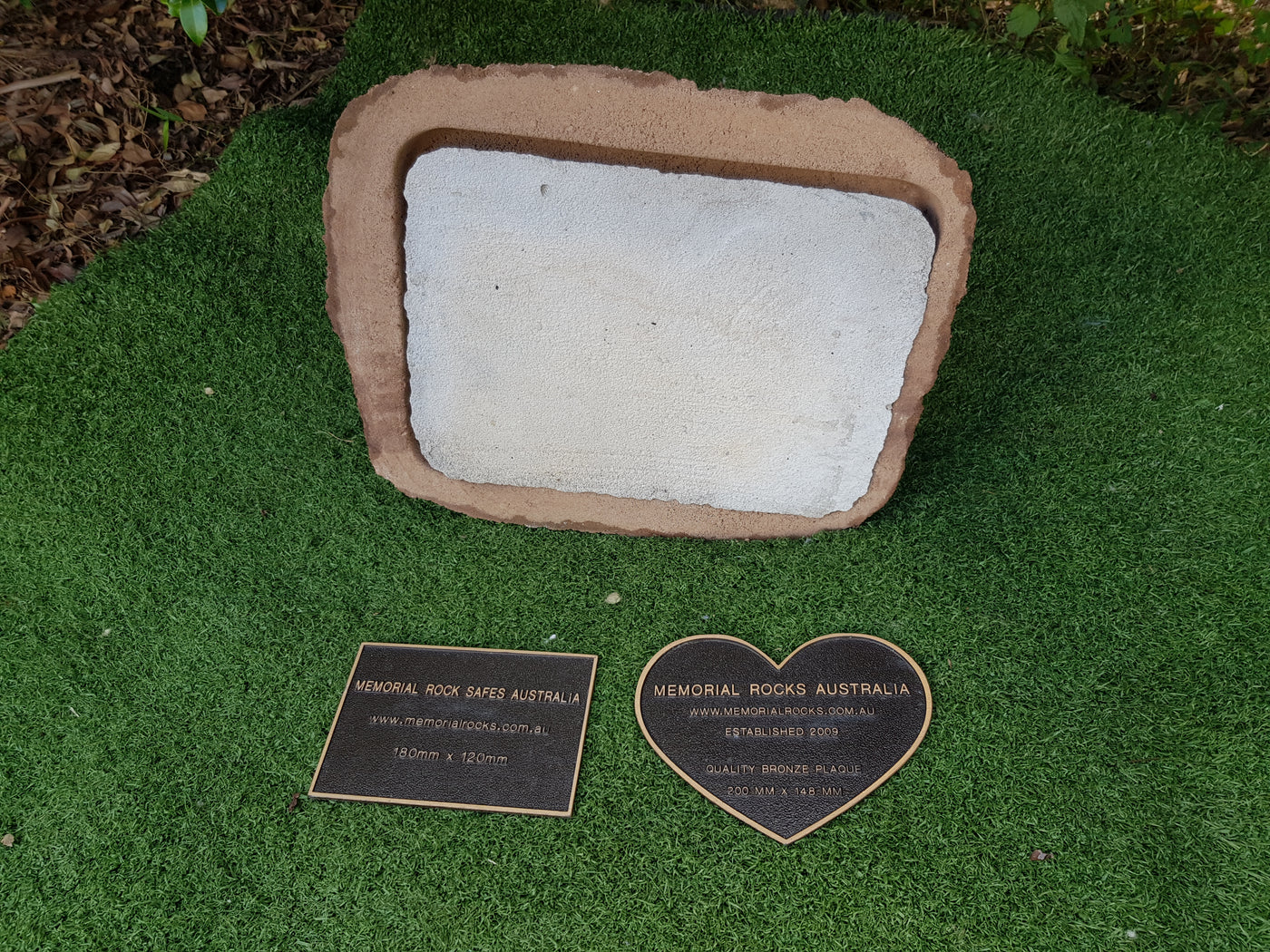 This Memorial Rock Urn has a useable flat section for a recommended 180mm x 120mm x 4.5mm  industry standard quality bronze plaque or our 200mm x 148mm x 4.5mm  heart plaque.