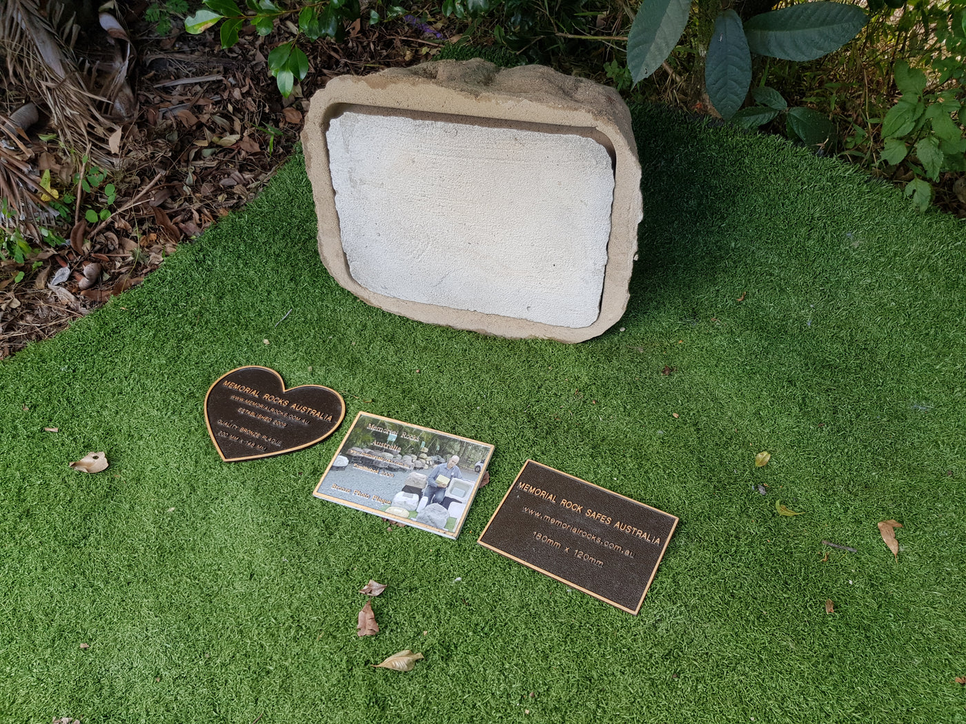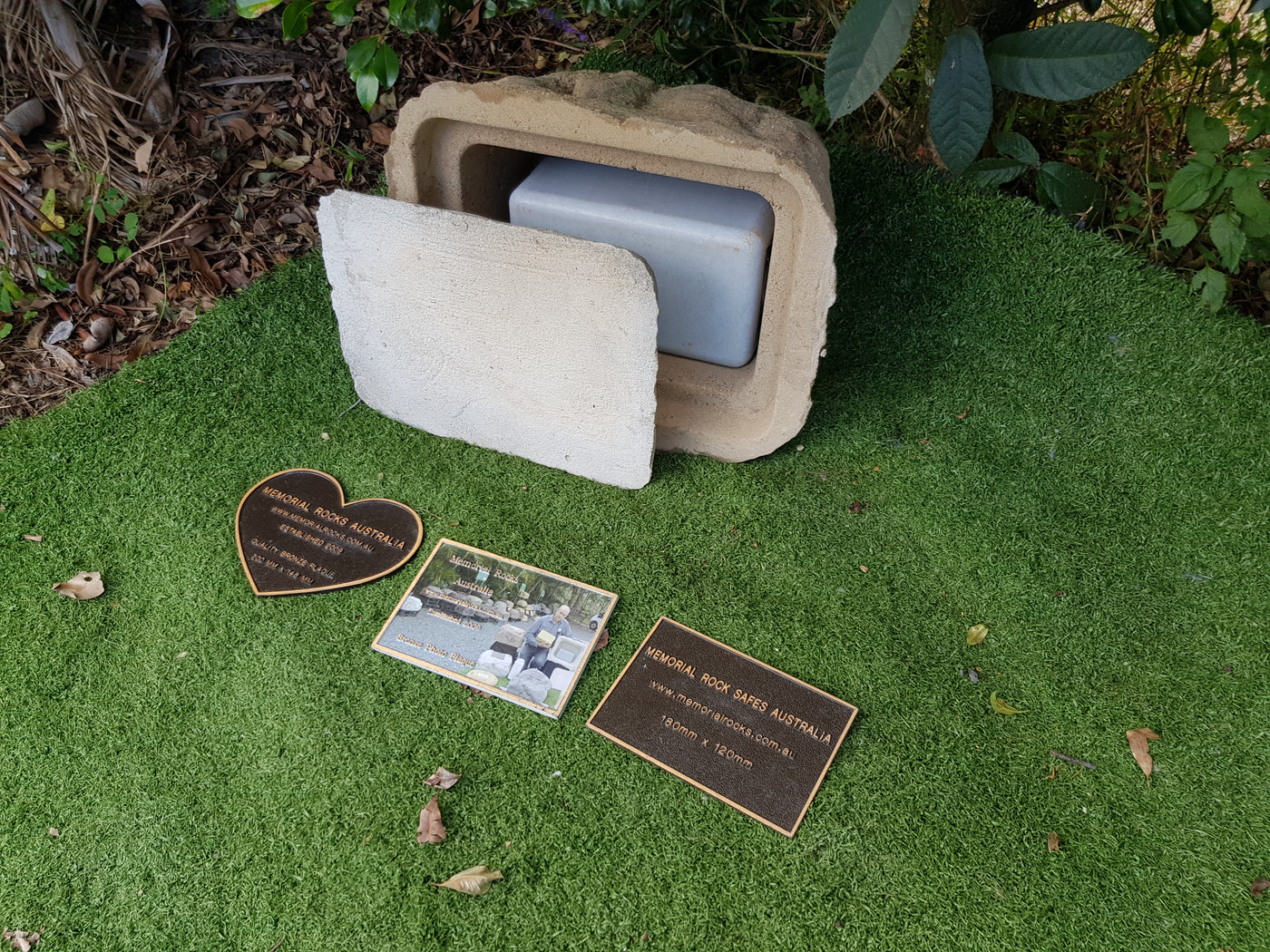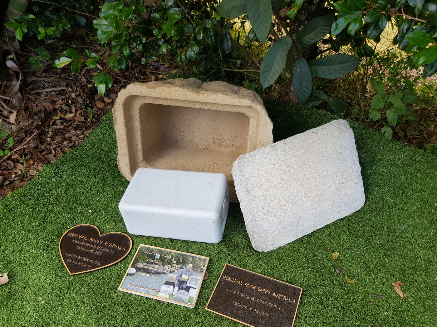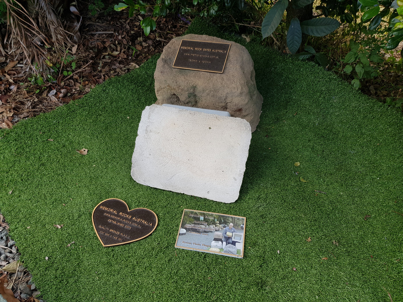 Proudly an original Australian product idea operating since 2009. Large Single Size Approx. 24 kg. Memorial Rock/Stone/Urn with a sealable internal cavity for the safe-keeping of a loved one's ashes. Holds one standard Australian sized ash container, plus memorabilia. Size Approx. 450mm x 390mm x 300mm (external). 270mm x 230mm x 170mm (interna...