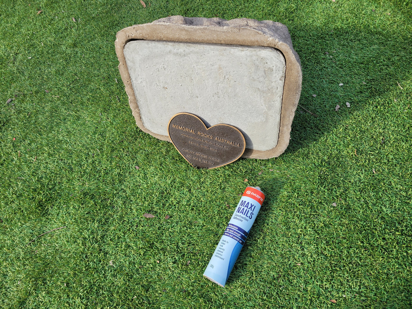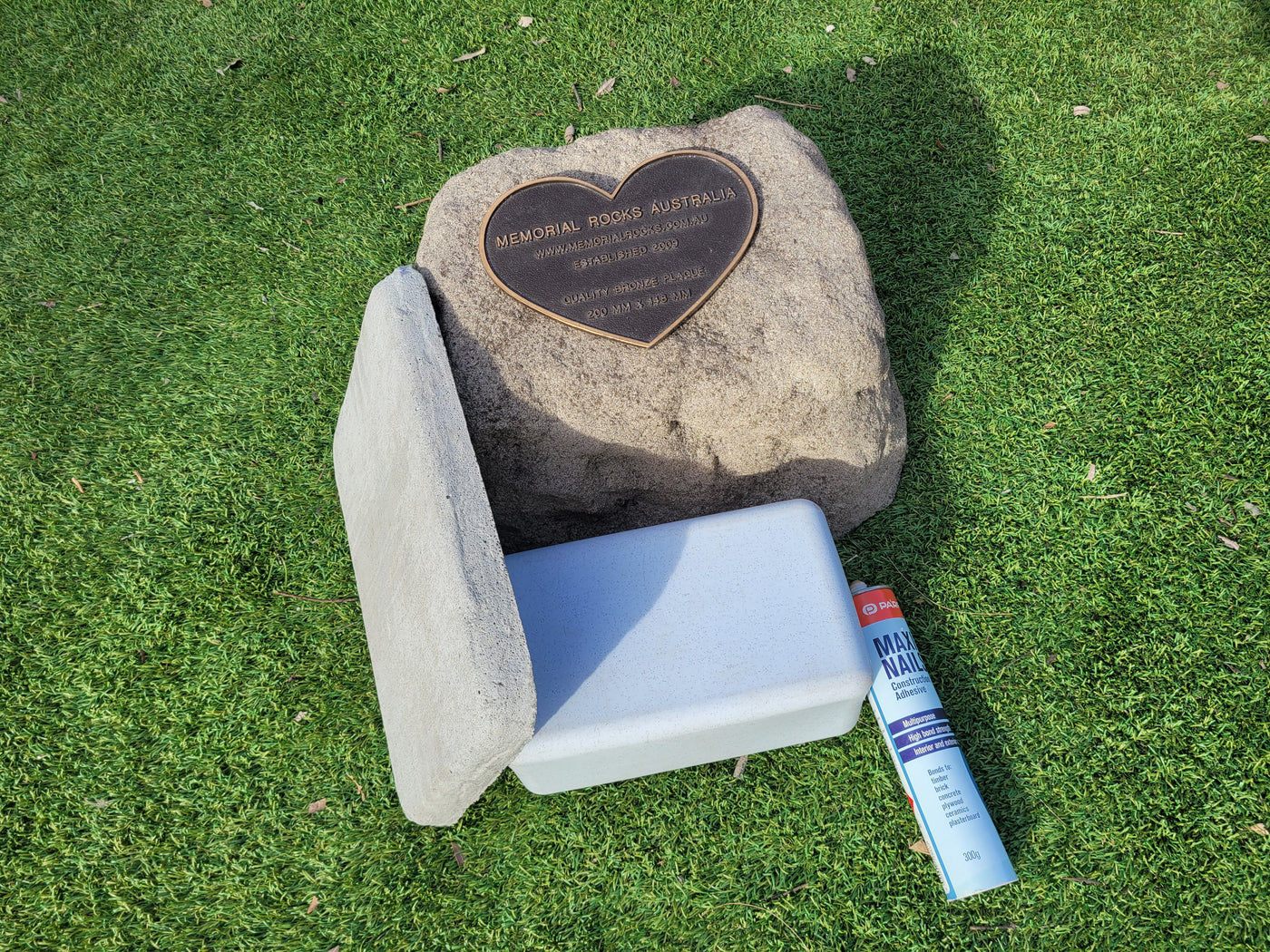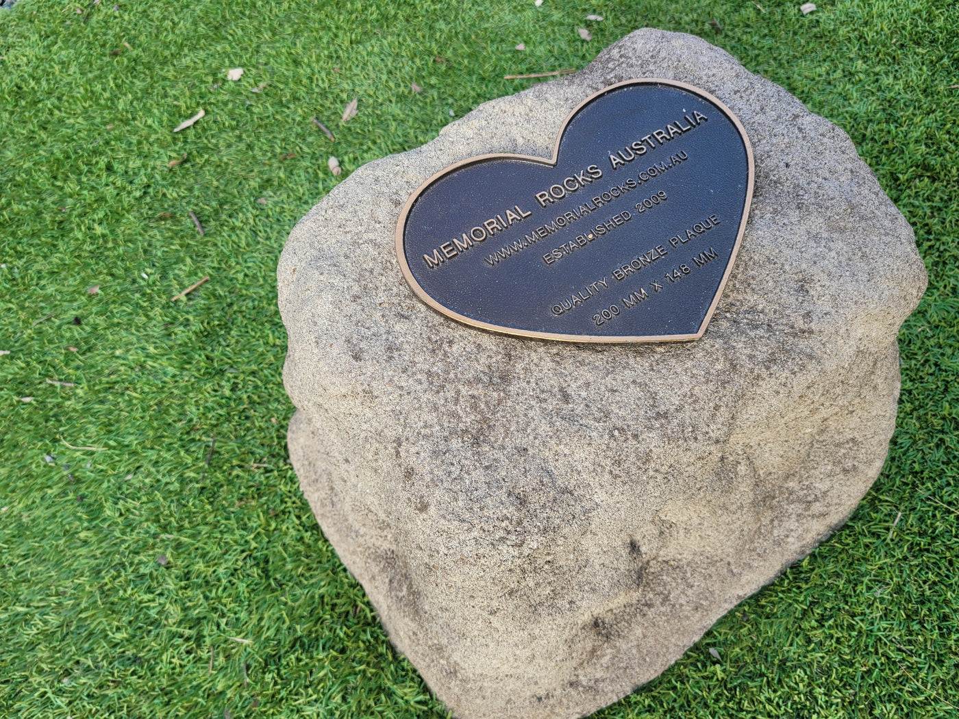 This Memorial Rock Urn has a useable flat section for a recommended 200mm x 150mm x 4.5mm  industry standard quality bronze plaque or our 200mm x 148mm x 4.5mm  heart plaque.