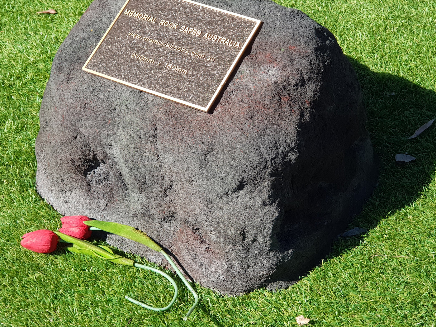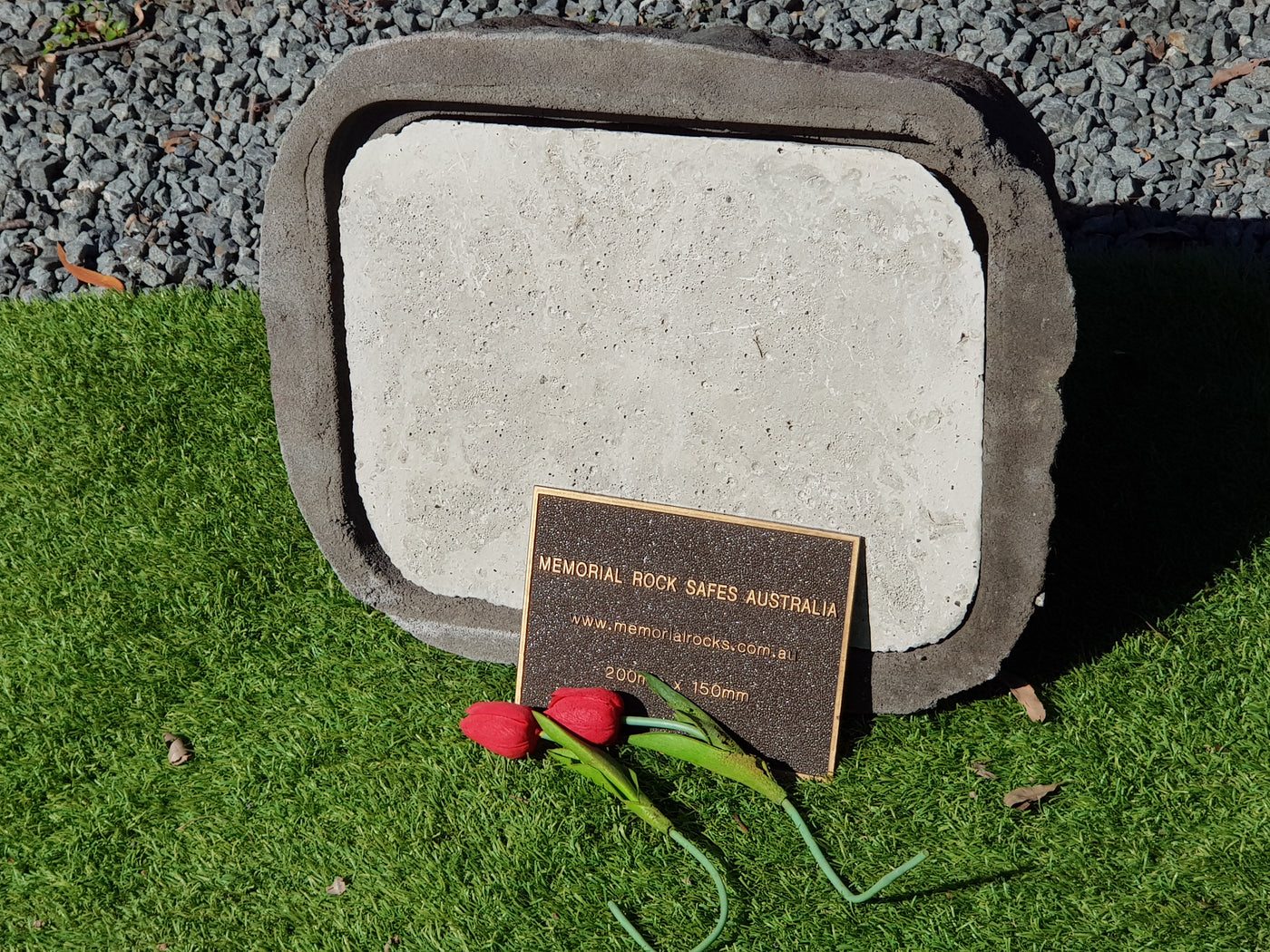 This Memorial Rock Urn has a useable flat section up to 220mm x 150mm for a quality bronze plaque or 2 smaller plaques (to perhaps accommodate a 2nd plaque at a futur time ) and or a picture. Suggested size for a single plaque 200mm x150mm.