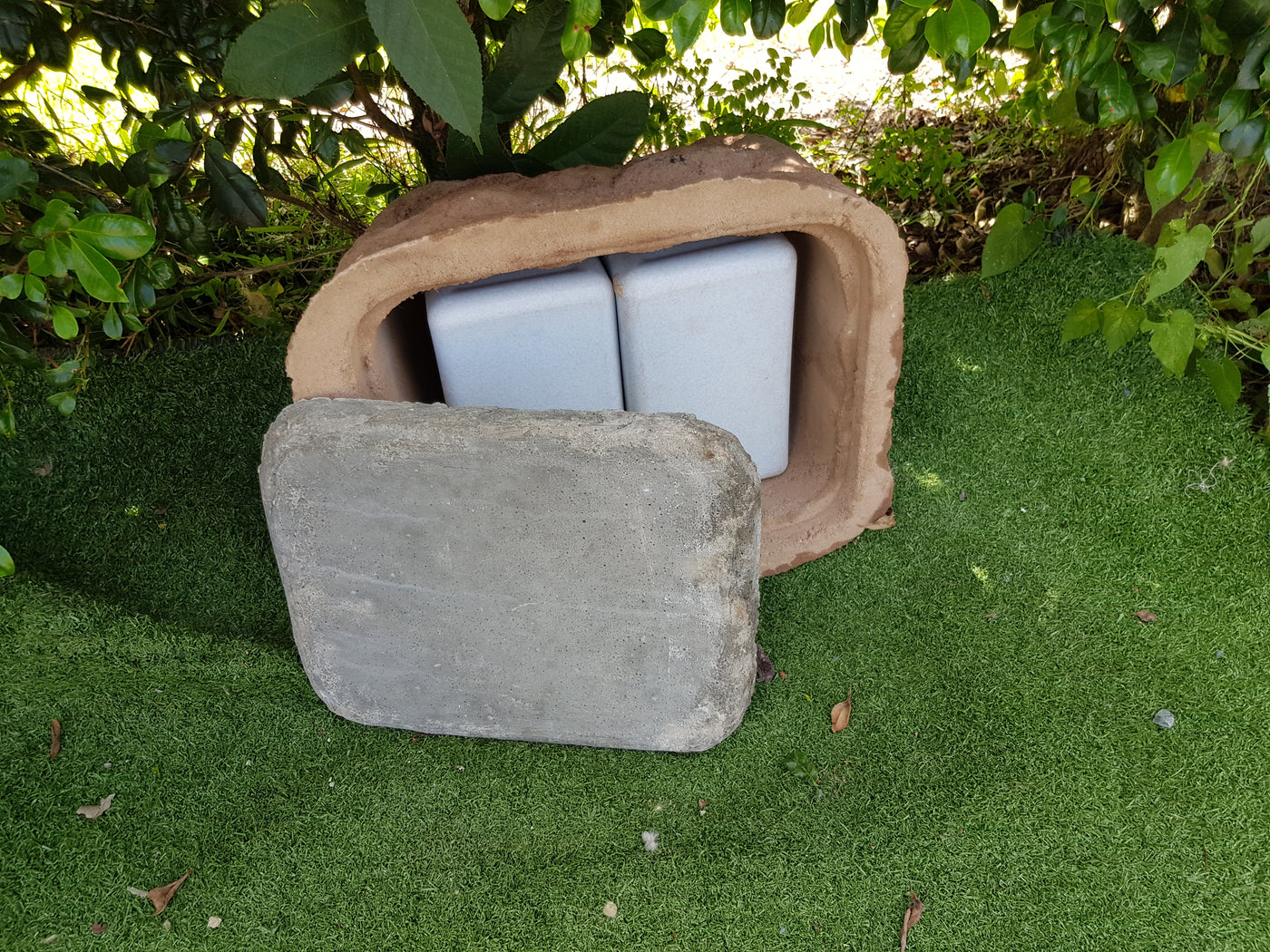 Weight (approx. 22 kg) Memorial Rock/Stone/Urn with a sealable internal cavity for the safe-keeping of a loved one's ashes. Holds one or two standard Australian sized ash containers, plus memorabilia.