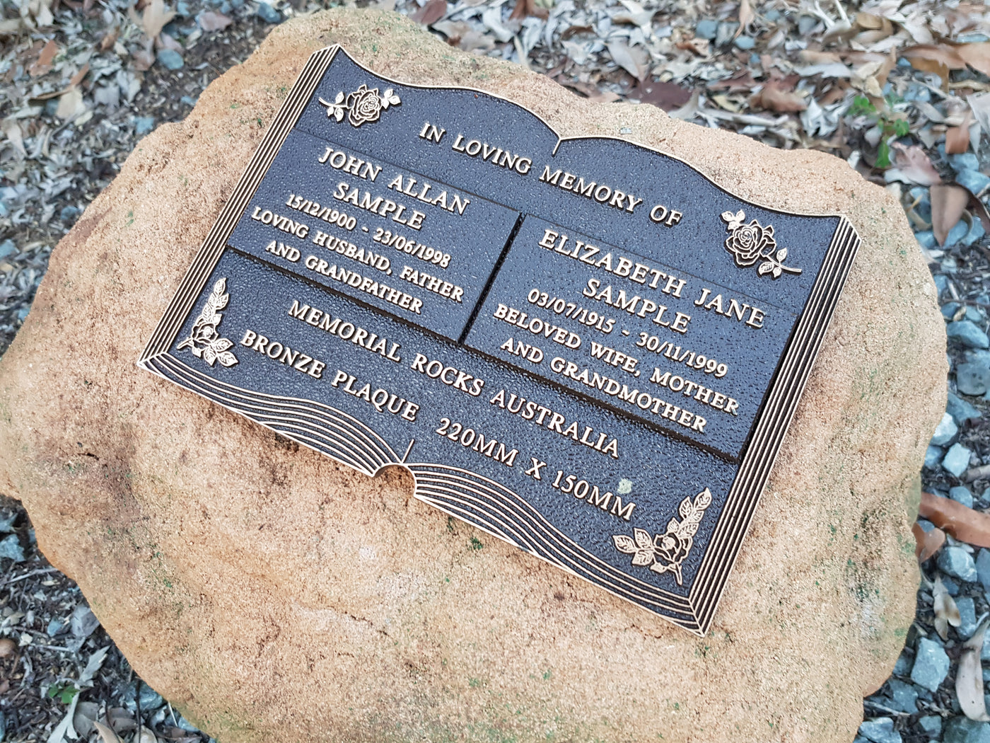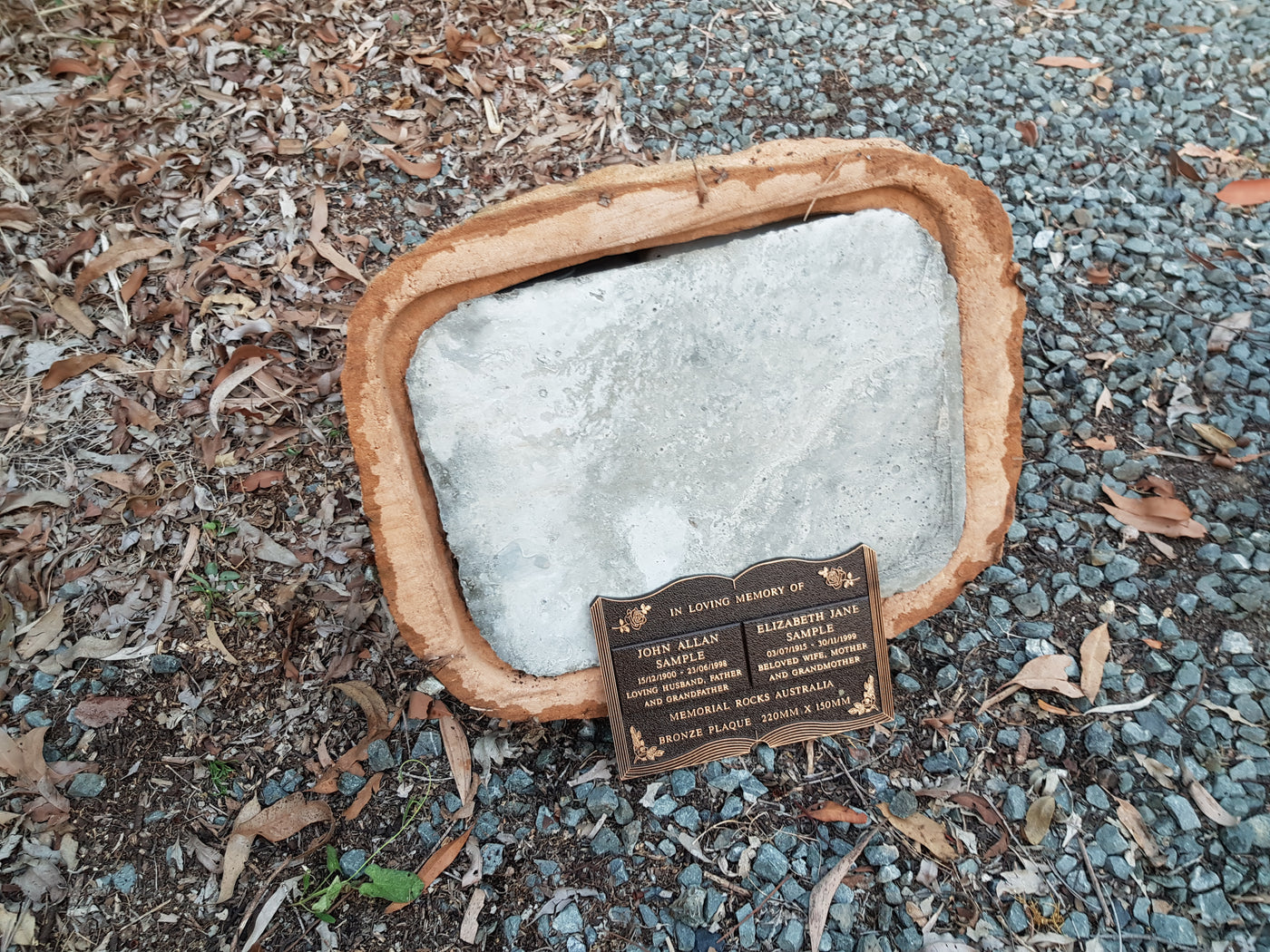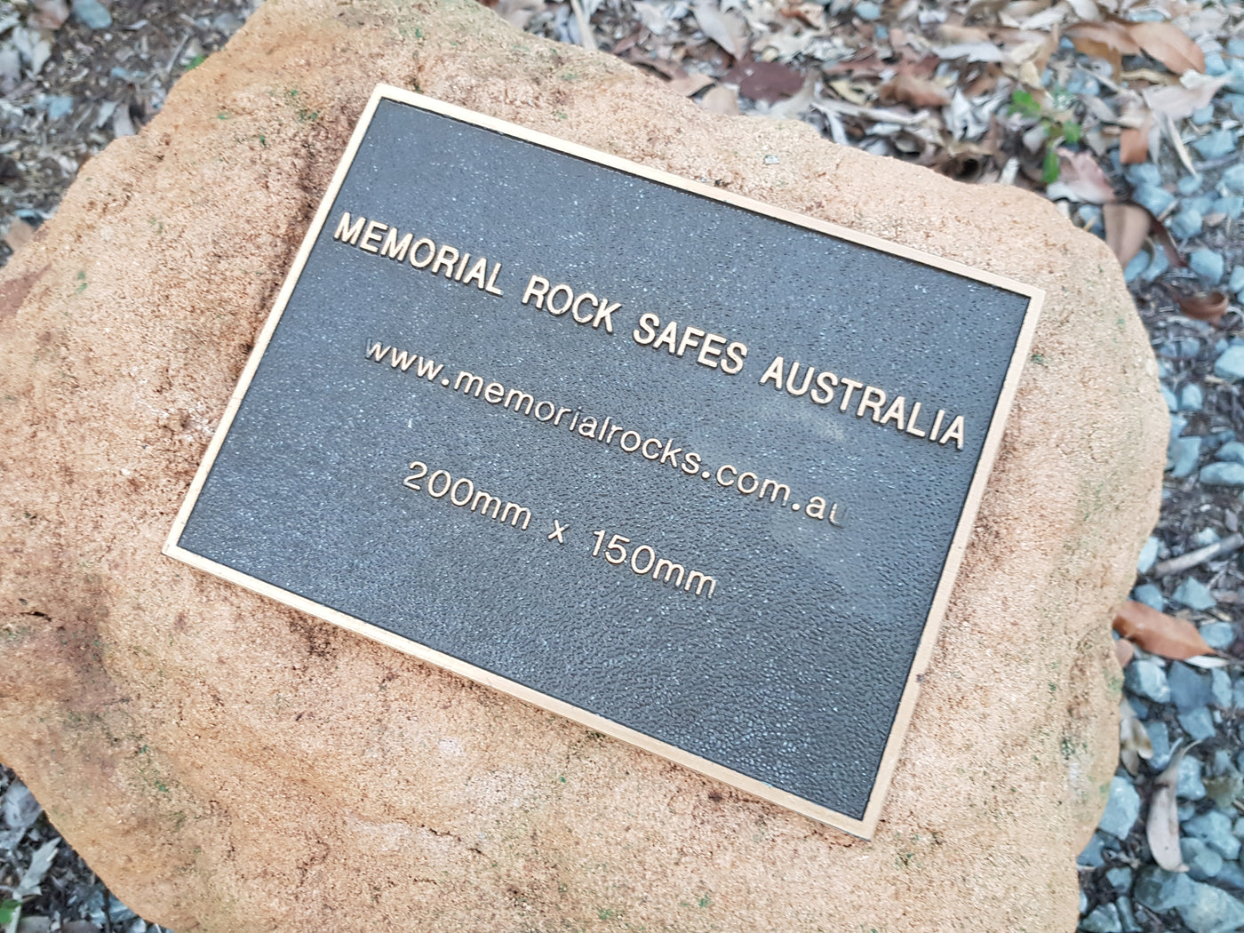 This Memorial Rock Urn has a useable flat section up to 200mm x 150mm for a quality bronze plaque or 2 smaller plaques (to perhaps accommodate a 2nd plaque at a much later time) and or a picture. Suggested size for a single plaque 200mm x150mm. SOLD SEPARATELY.