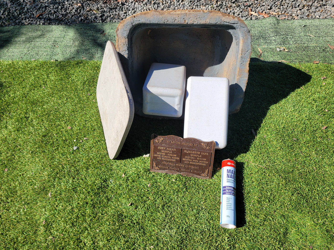 We provide a backing plate and sealant for those able to arrange interment themselves upon delivery.