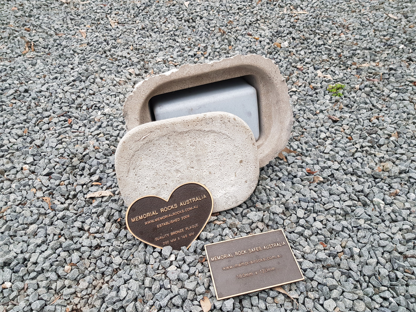 Memorial Rock Urns are a loving practical alternative for the safe keeping of a loved one's ashes. This Memorial rock has an incorporated flat space for up to a 180mm x 120mm x 4.5mm Plaque or our heart plaque. (200mm x 150mm) PLAQUE SOLD SEPARATELY The blue plastic standard Australian sized cremation urn seen in the pictures demonstrates the ...