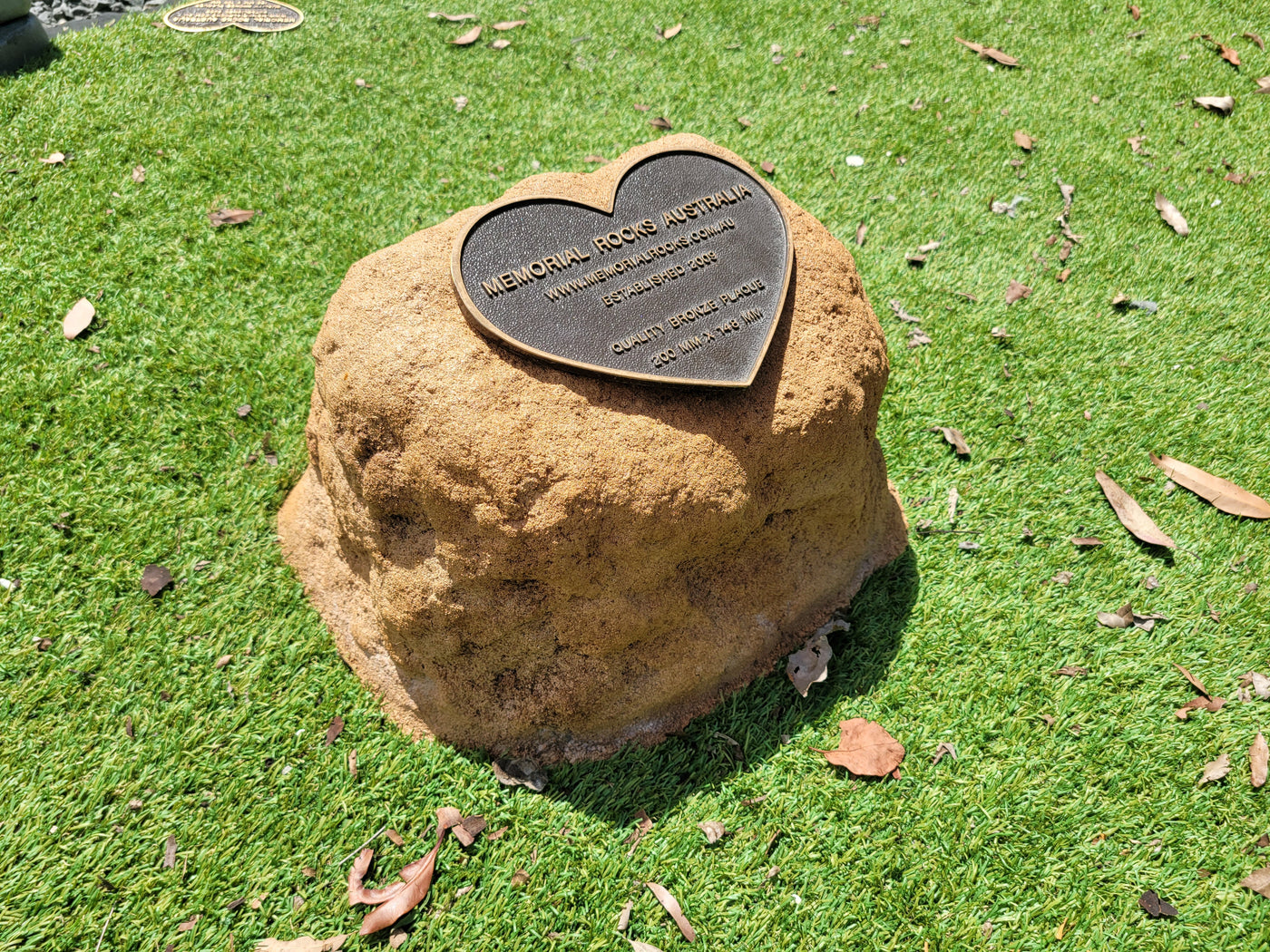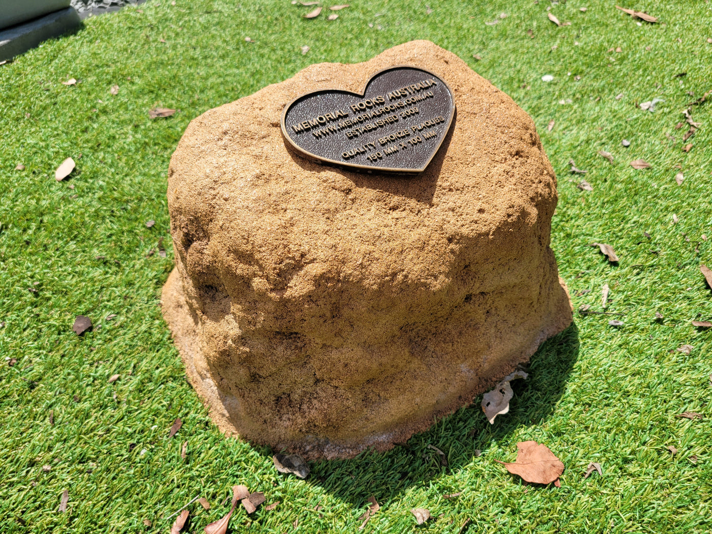 Lightweight (approx. 14kg) Memorial Rock/Stone/Urn with a sealable internal cavity for the safe-keeping of a loved one's ashes. Holds one standard Australian sized ash container.