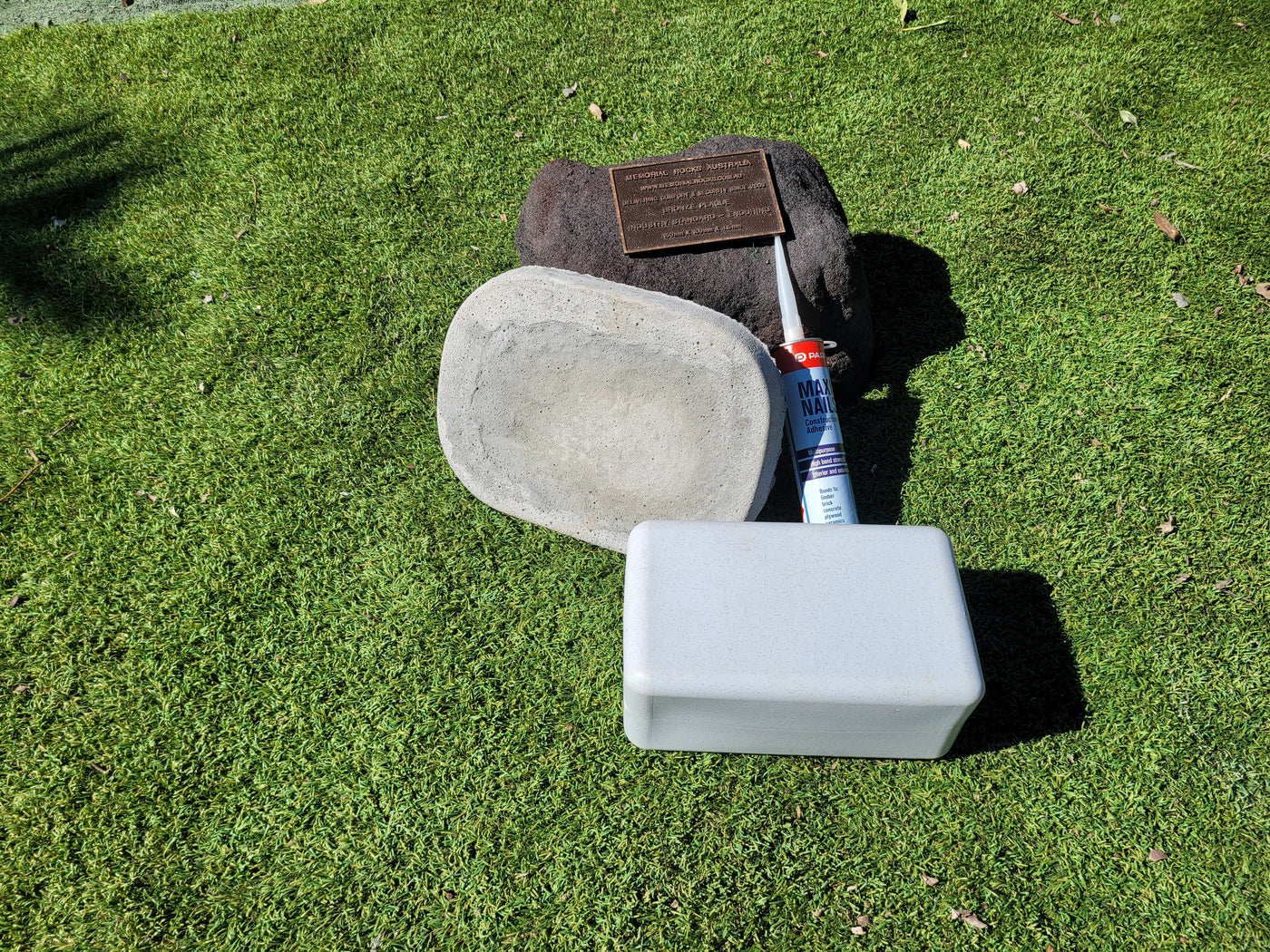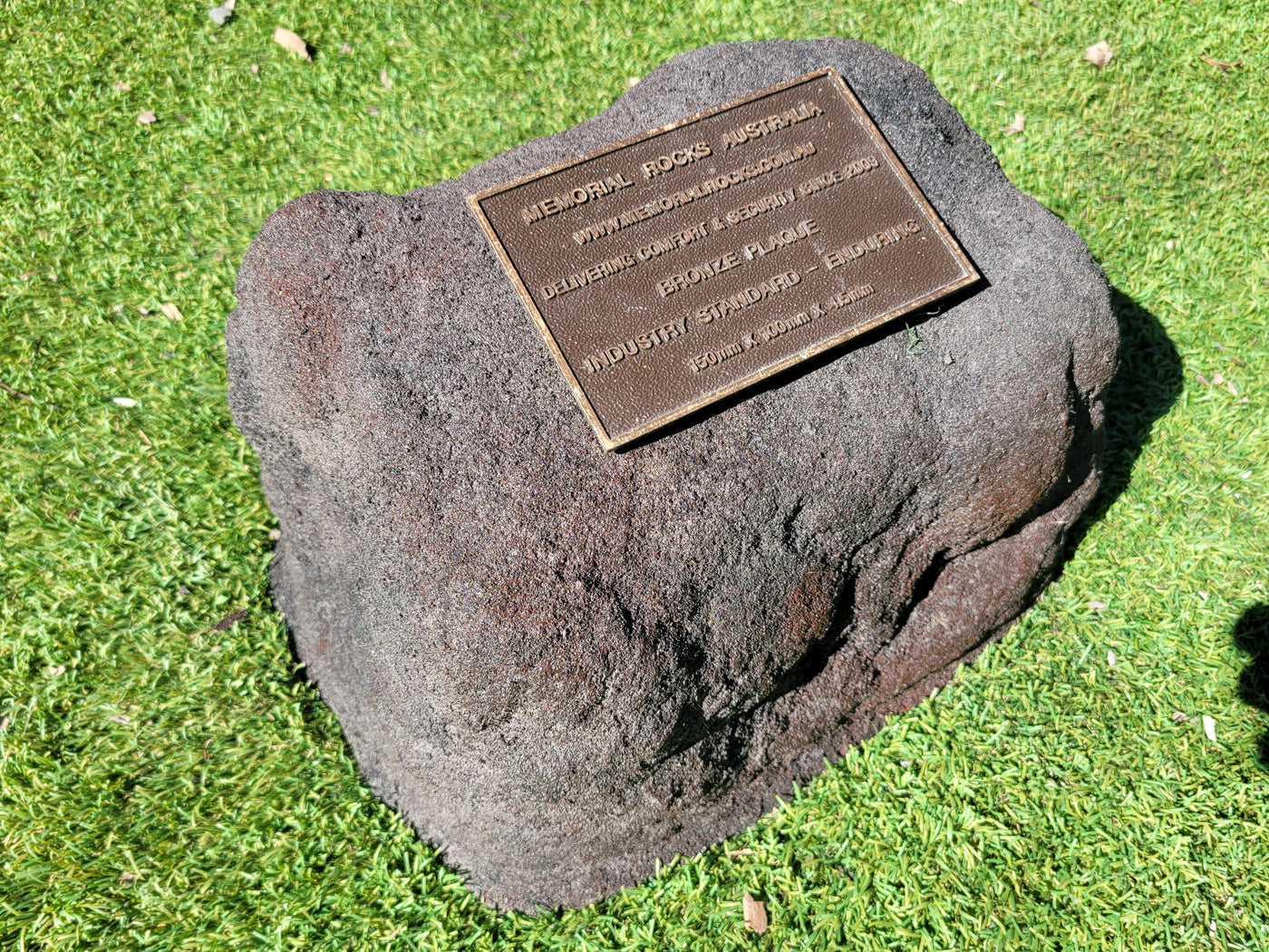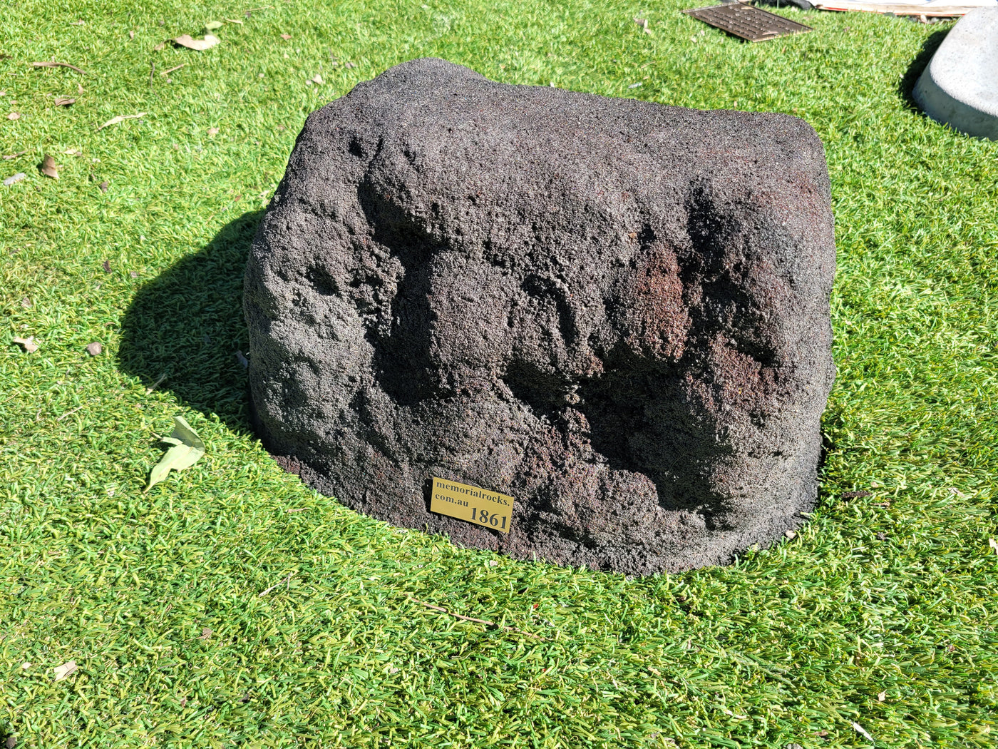 Memorial Rock Urns are a loving practical alternative for the safe keeping of a loved one's ashes. This Memorial rock has an incorporated flat space for up to a 180mm x 120mm x 4.5mm Plaque or our heart plaque. (200mm x 150mm) PLAQUE SOLD SEPARATELY The blue plastic standard Australian sized cremation urn seen in the pictures demonstrates the ...