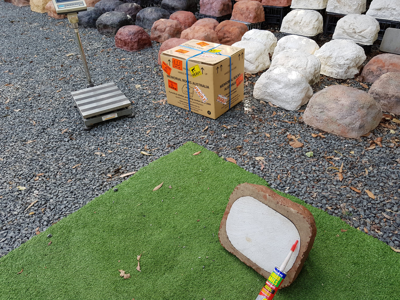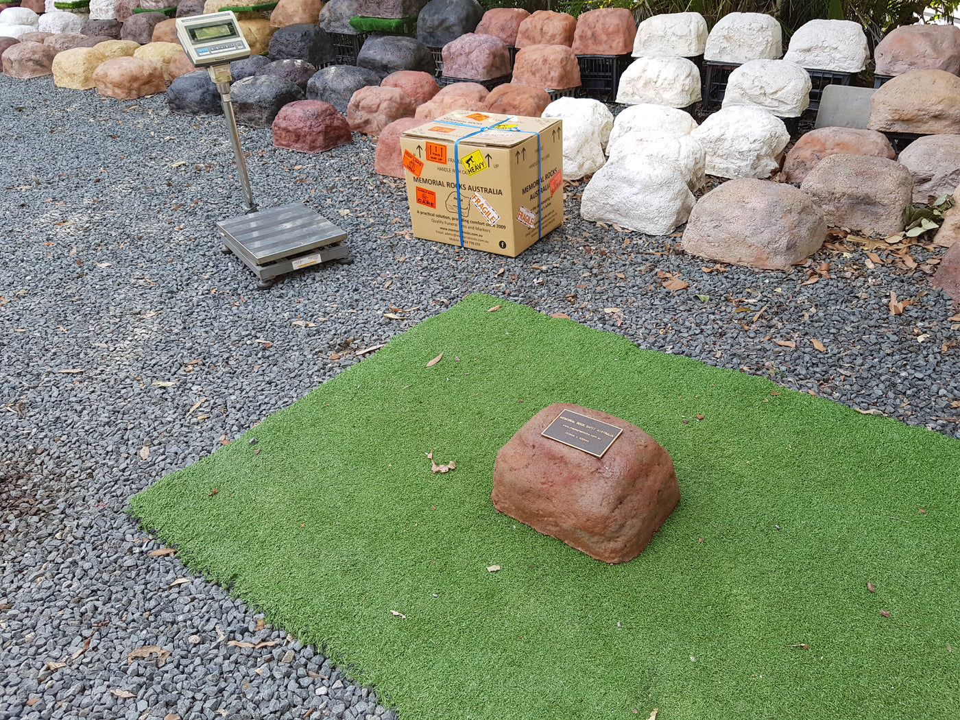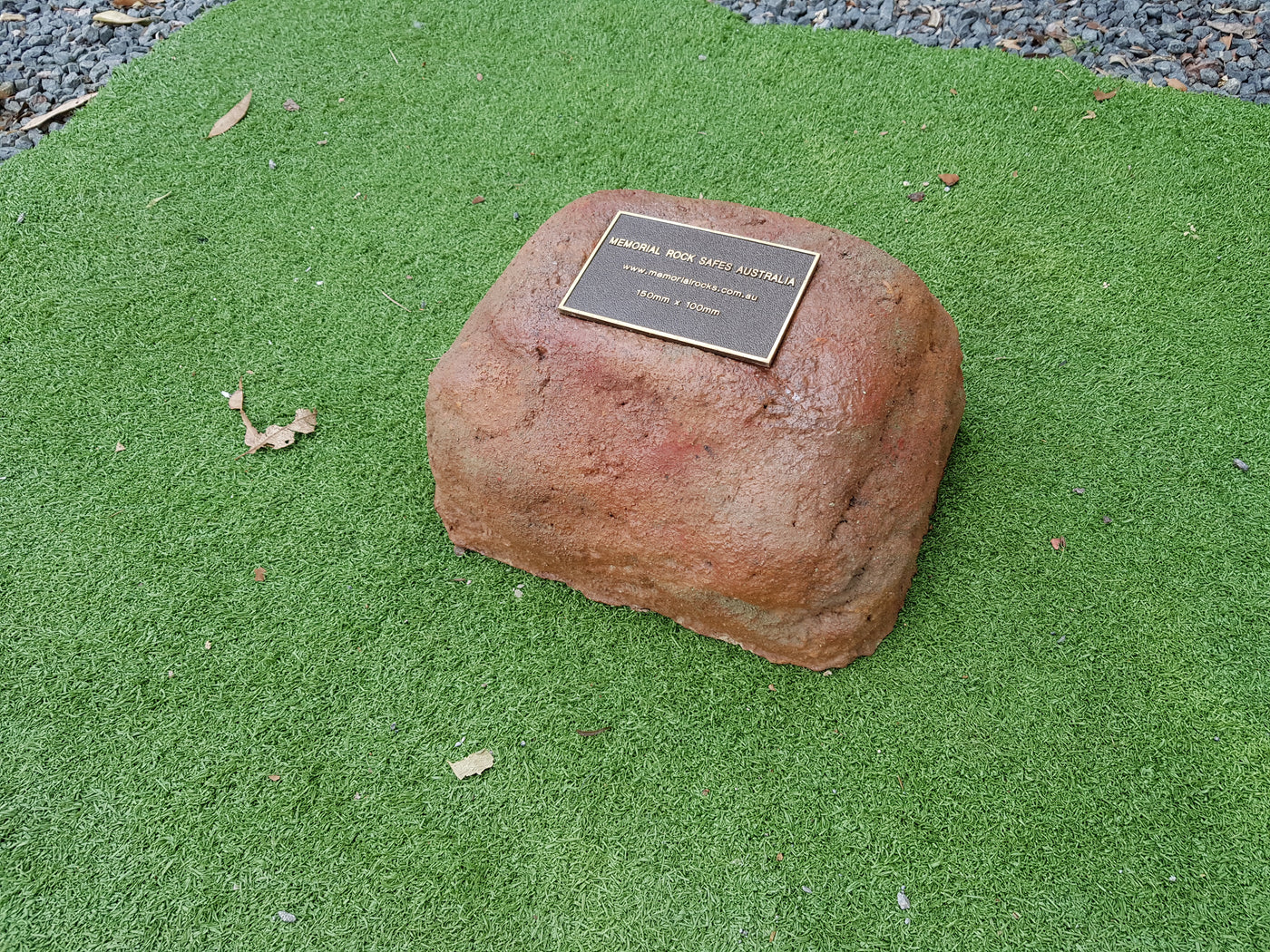 Lightweight (approx. 11 kg) Memorial Rock/Stone/Urn with a sealable internal cavity for the safe-keeping of a loved one's ashes. Holds one standard Australian sized ash container.