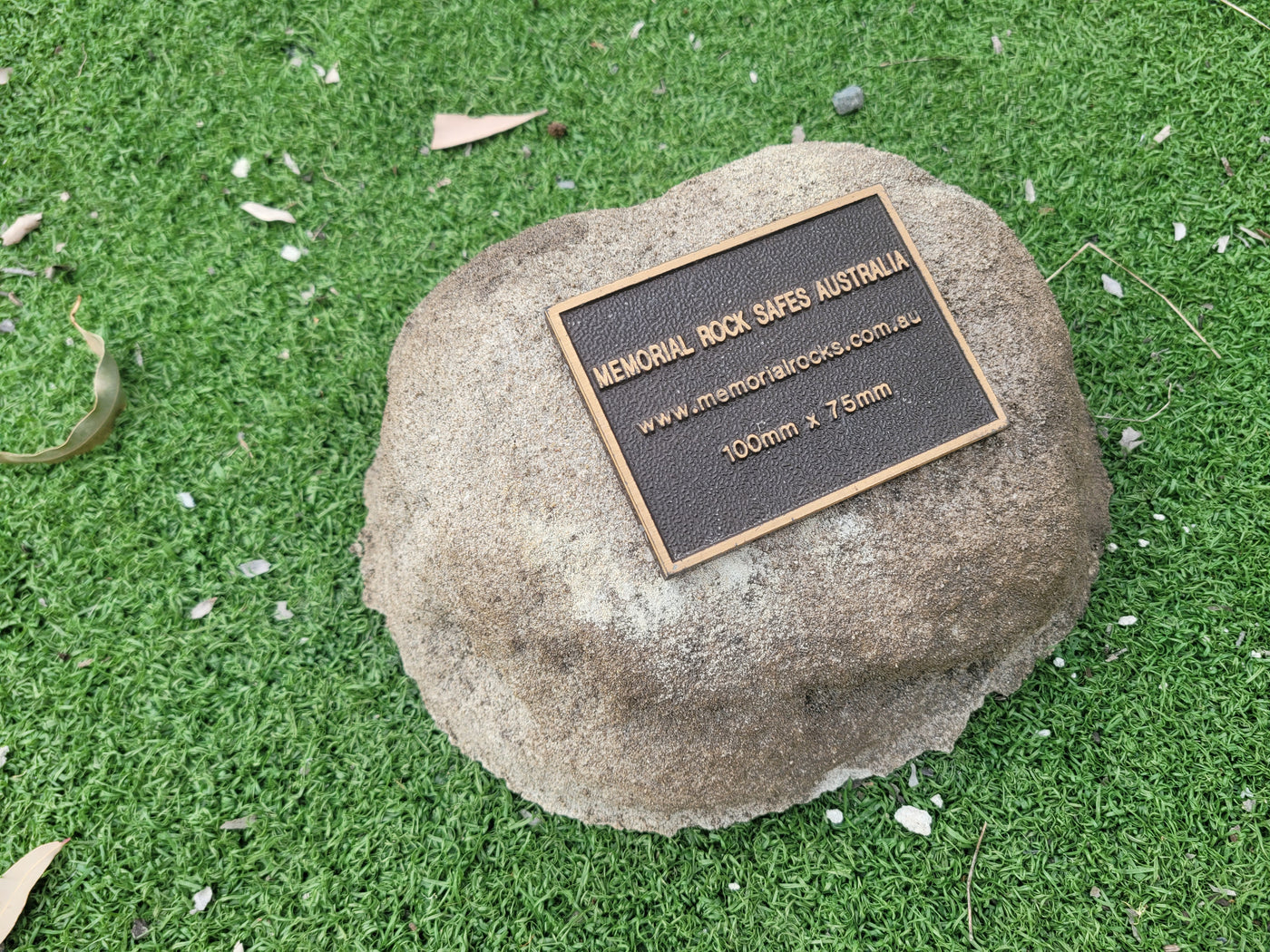 Memorial Rock Urns are a loving practical alternative for the safe keeping of a loved one's ashes. This Memorial Rock Urn has a small internal sealed container for partial ash interment. This Partial Ash Urn Memorial rock has an incorporated flat space for a 100 mm x 75mm x4.5mm industry standard bronze plaque. Proudly Australian made, origin...