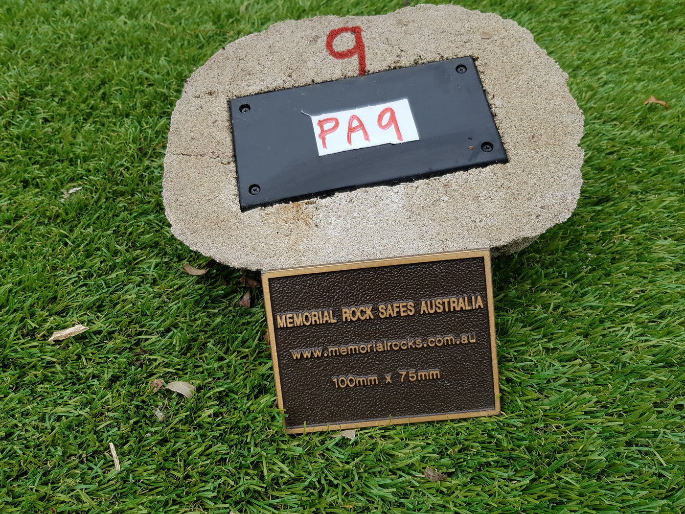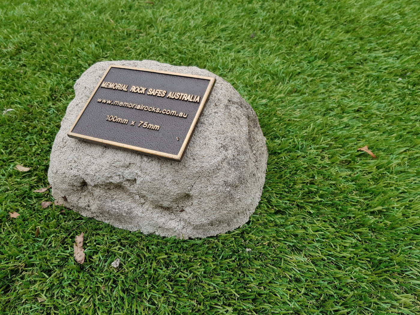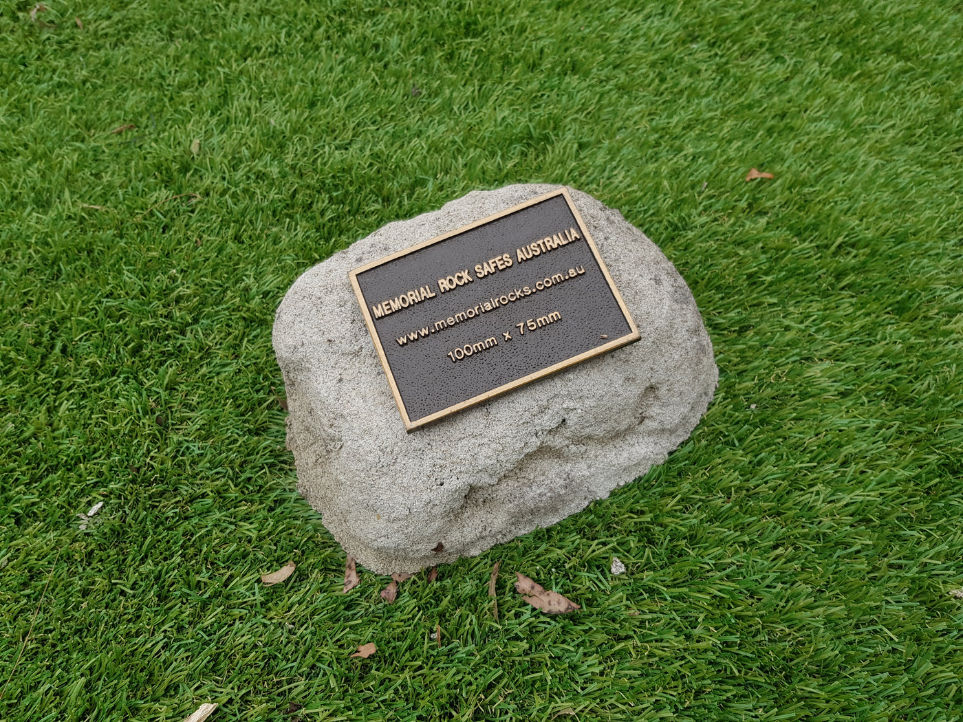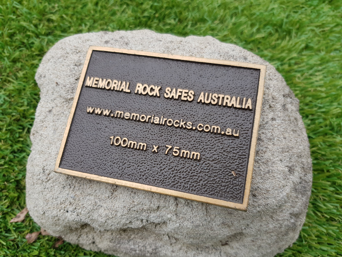 A high quality bronze plaque of your choice can also be purchased and can affixed prior to shipping if you wish.  A 80mm x 30mm x 4.5 mm Plaque is a recommended  size plaque for this small sized Partial Ash - Memorial Rock Urn.