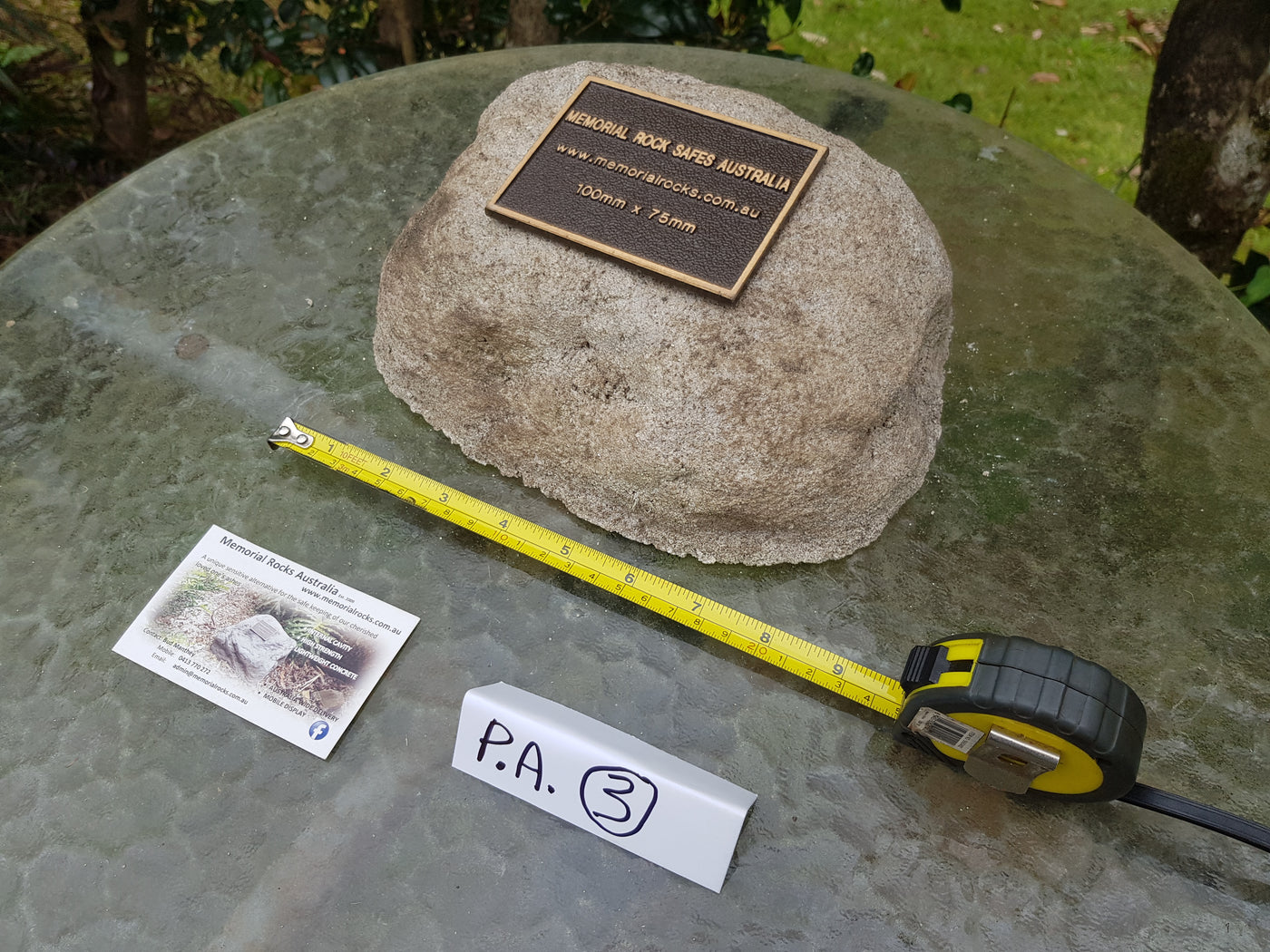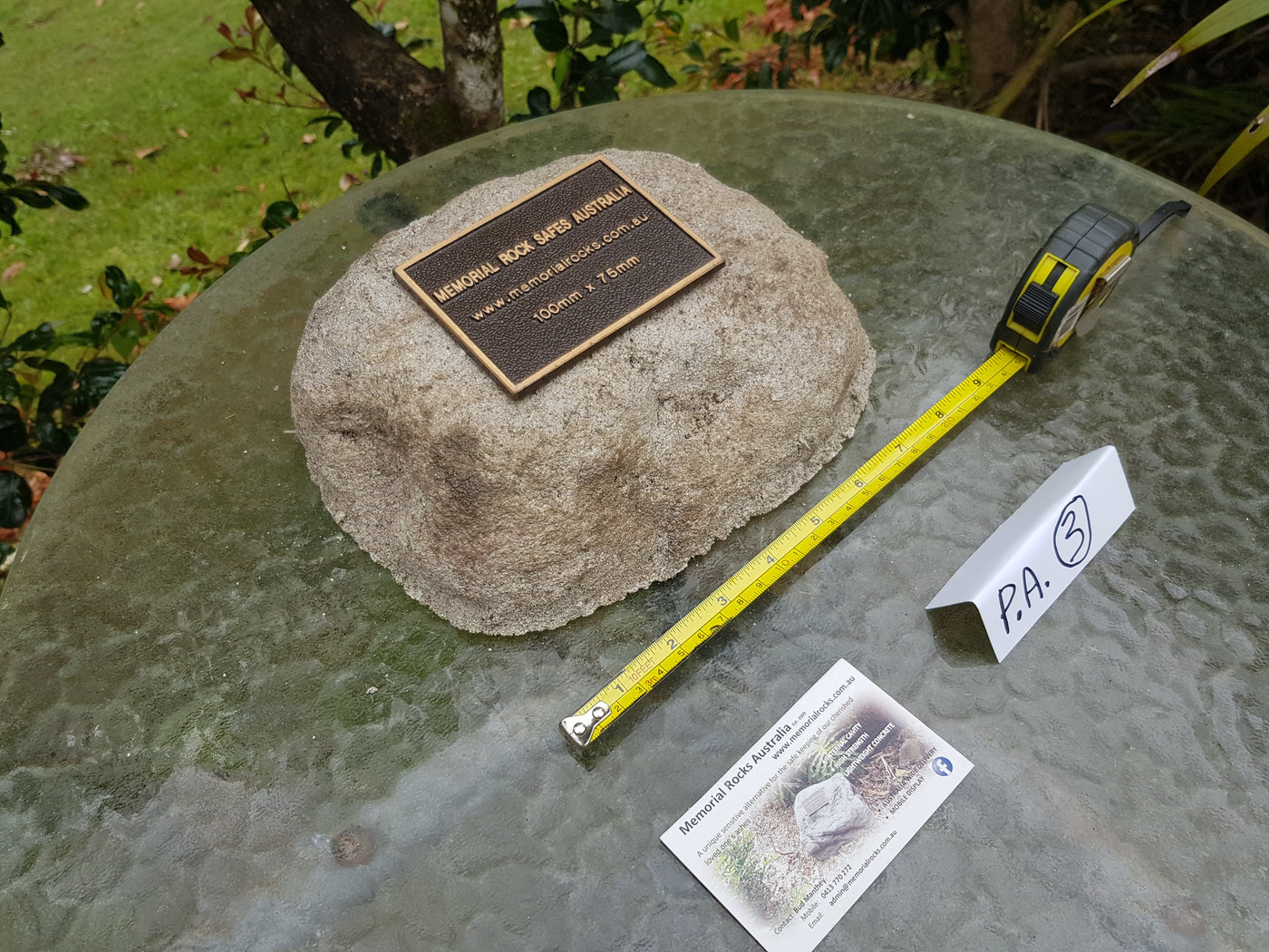 Memorial Rock Urns are a loving practical alternative for the safe keeping of a loved one's ashes. This Memorial Rock Urn has a small internal sealed container for partial ash interment. This Partial Ash Urn Memorial rock has an incorporated flat space for a 100 mm x 75mm x4.5mm industry standard bronze plaque. PLAQUE SOLD SEPARATELY Proudly...