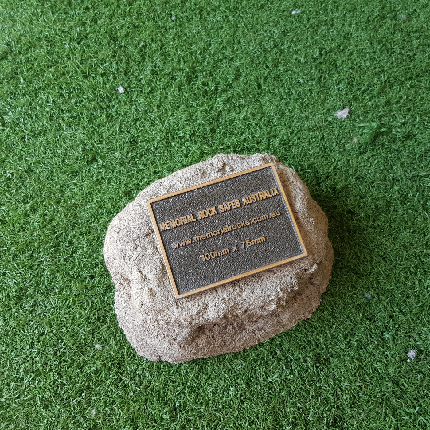 Memorial Rock Urns are a loving practical alternative for the safe keeping of a loved one's ashes. This Memorial Rock Urn has a small internal sealed container for partial ash interment. This Partial Ash Urn Memorial rock has an incorporated flat space for a industry standard bronze plaque 80 mm x 40mm x4.5mm or a 150mm x 100mm x 4.5 mm hear...