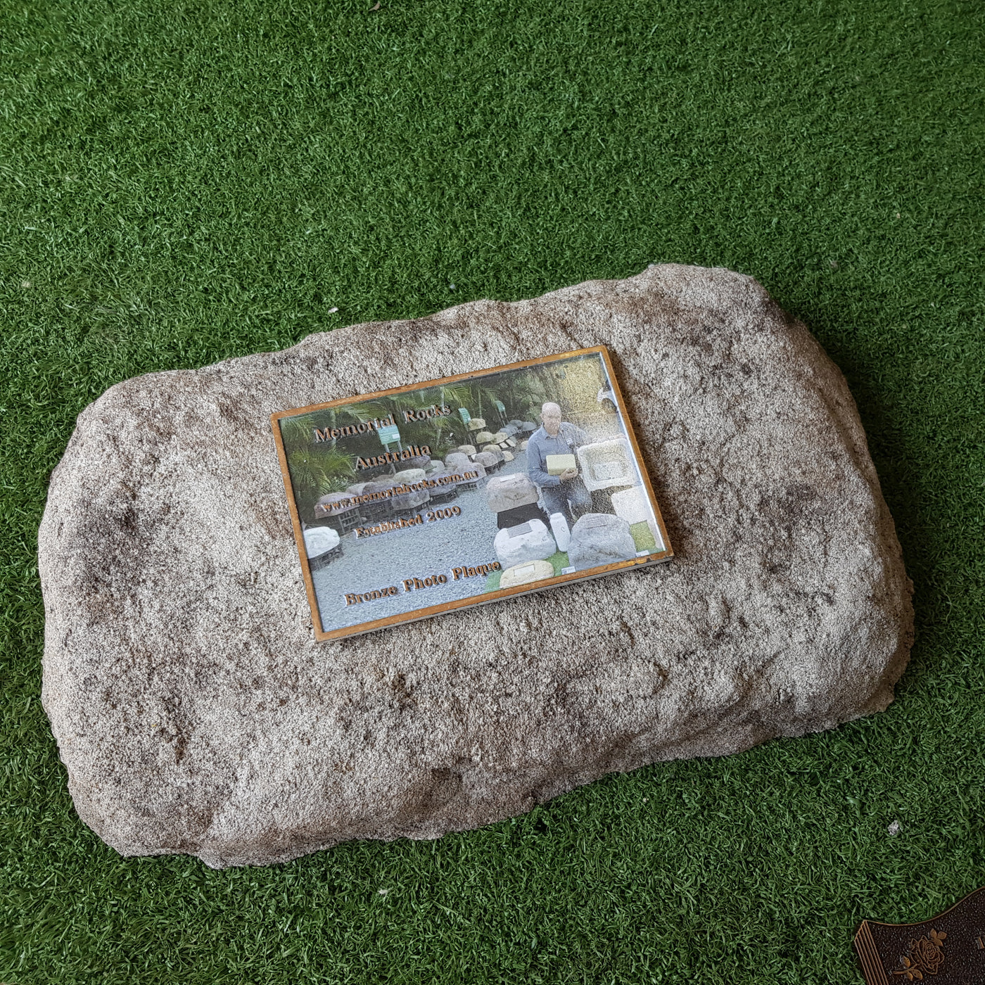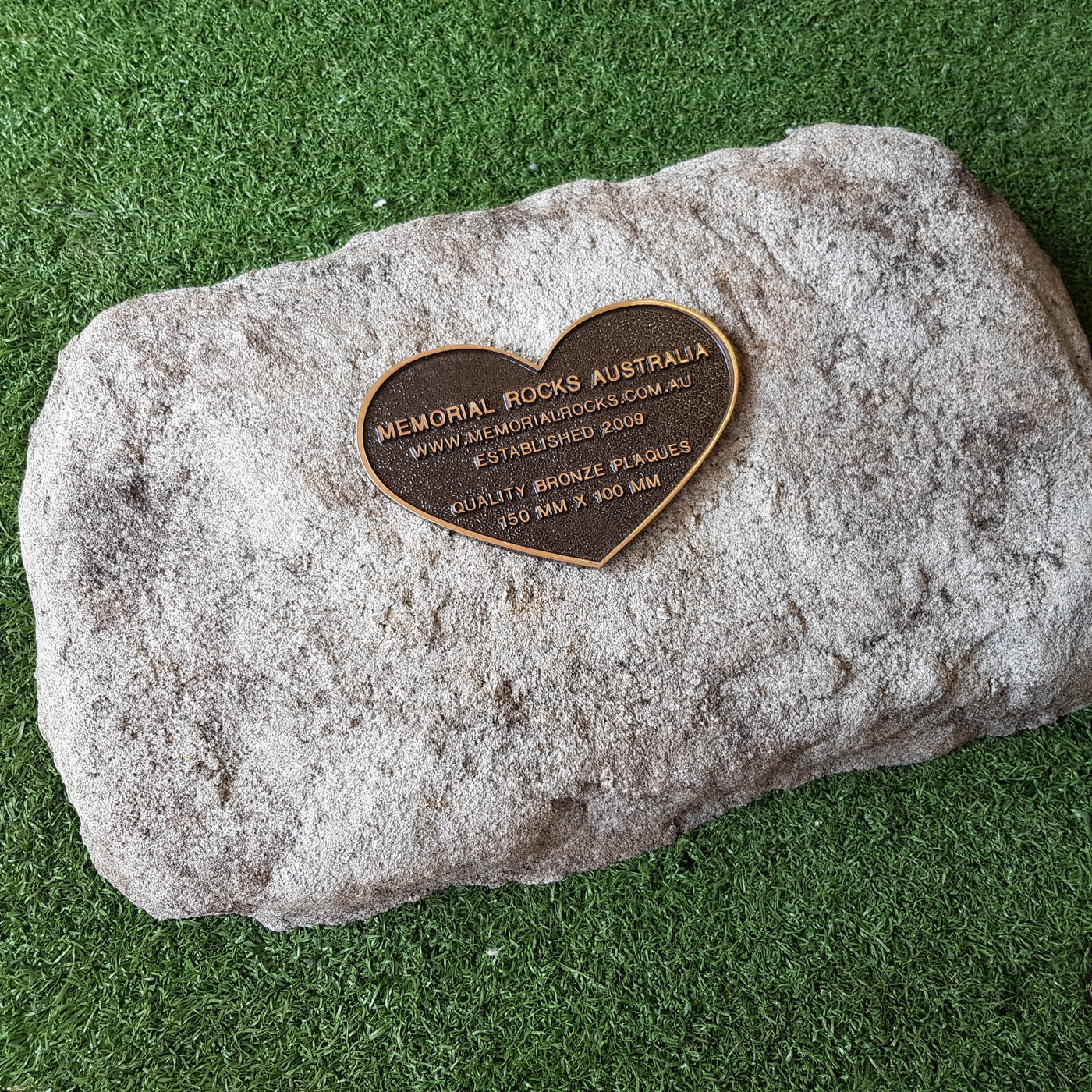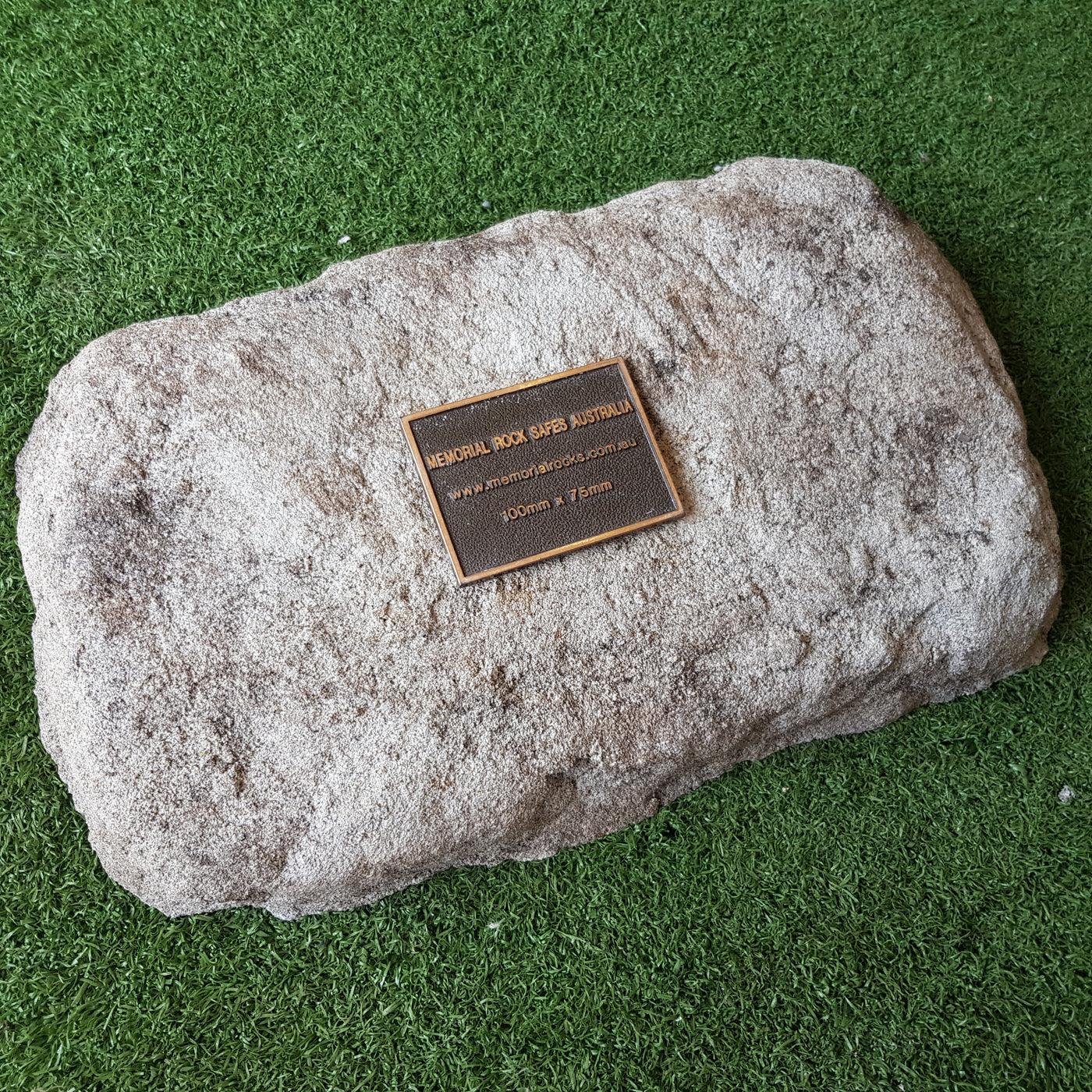Memorial Rock Urns are a loving practical alternative for the safe keeping of a loved one's ashes. This Memorial Rock Urn has a small internal sealed container for partial ash interment. This Partial Ash Urn Memorial rock has an incorporated flat space for a industry standard bronze plaque 80 mm x 40mm x4.5mm or a 150mm x 100mm x 4.5 mm hear...
